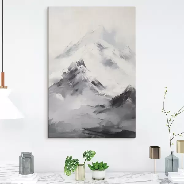 Quadri Cime innevate con ombre grigie, cielo grigio, pennellate, texture, minimalista Nr s45933