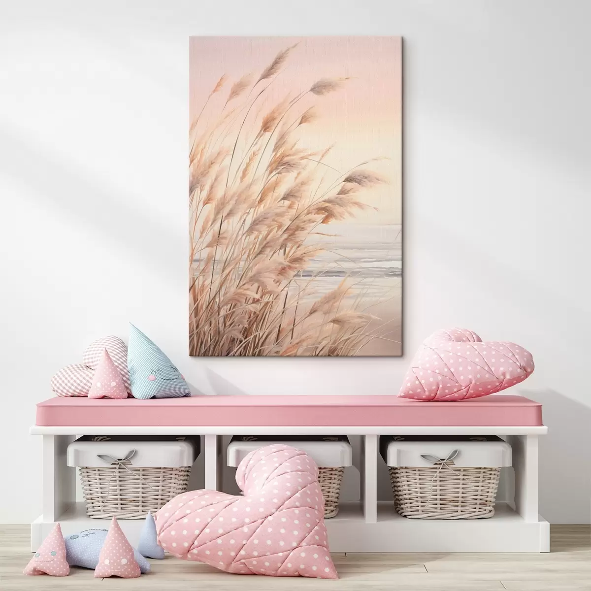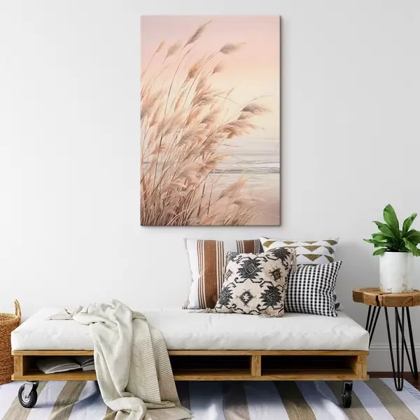 Quadri Erba della Pampa con una tavolozza di colori arancione pastello, cielo rosa chiaro, un paesaggio tranquillo Nr s45934
