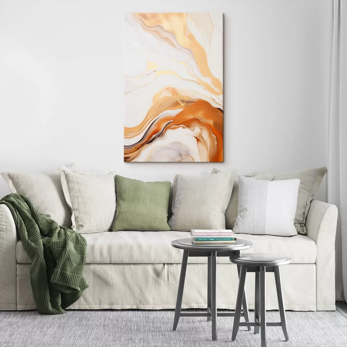 Quadri Imitazione della pittura astratta con forme fluide nei toni del bianco, arancione e marrone, minimalista Nr s45938