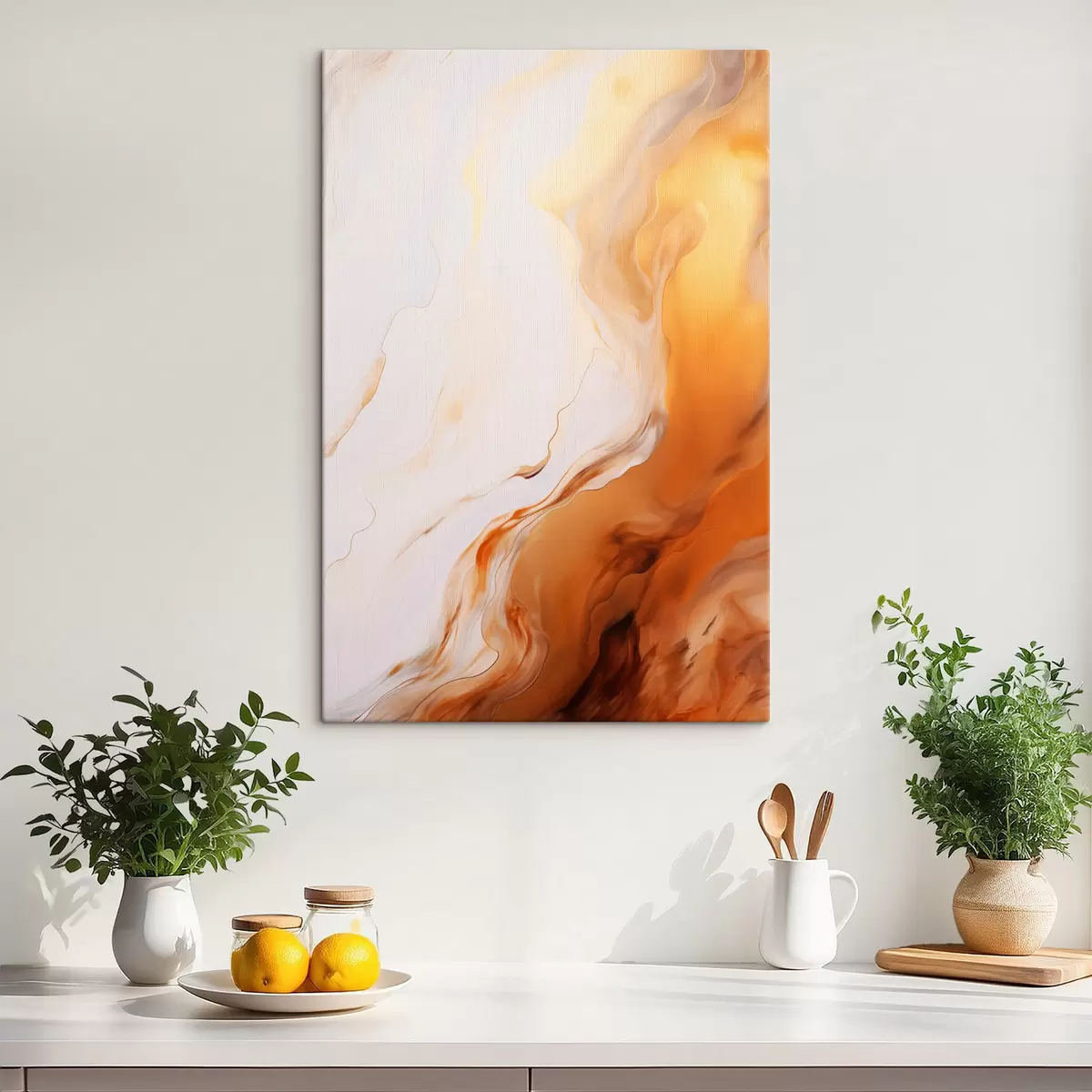 Quadri Imitazione di pittura astratta con colori bianco e arancione, arte fluida con linee ondulate, arte moderna Nr s45939