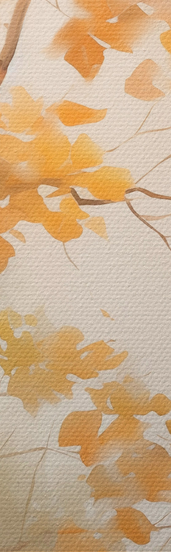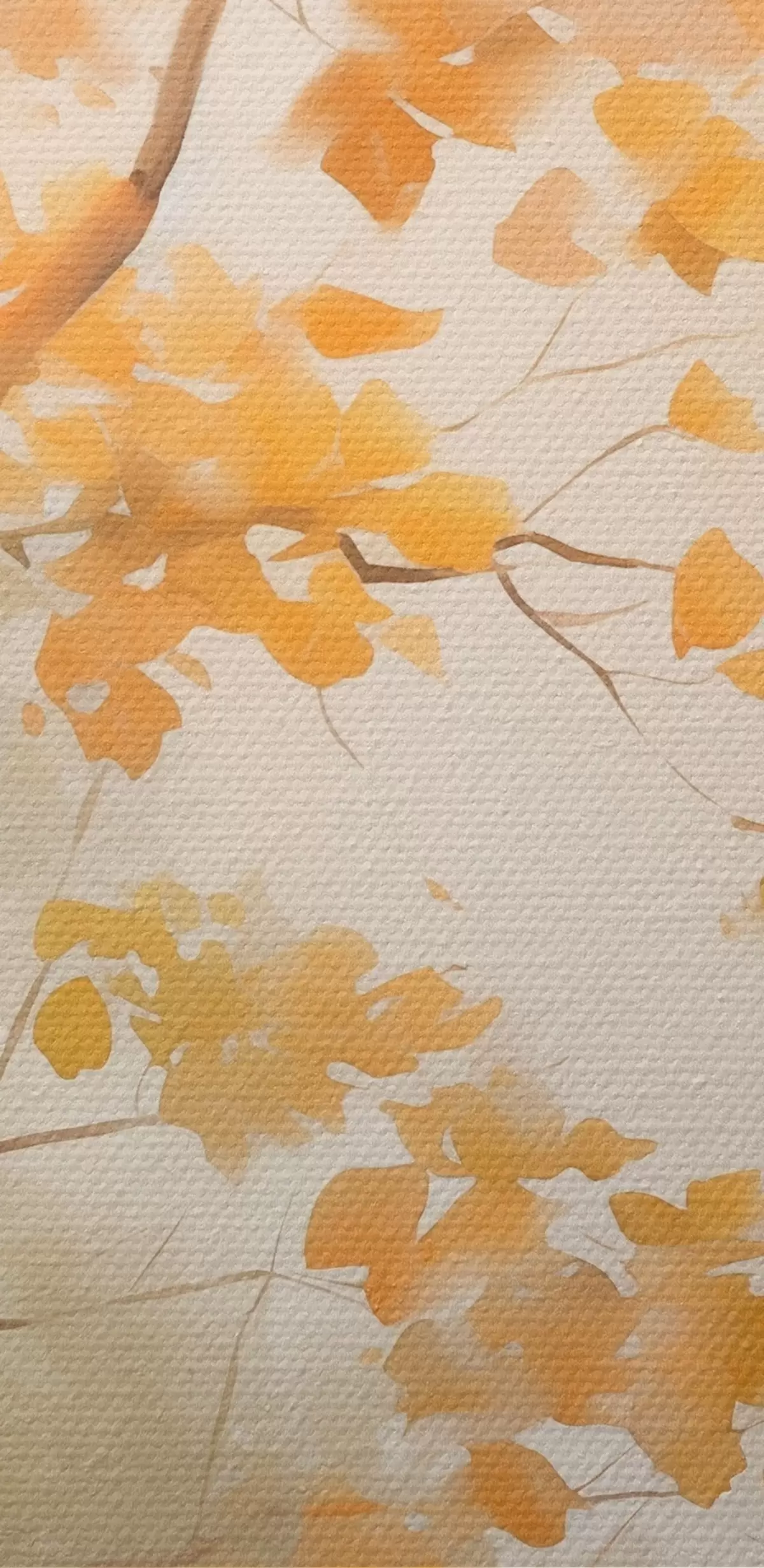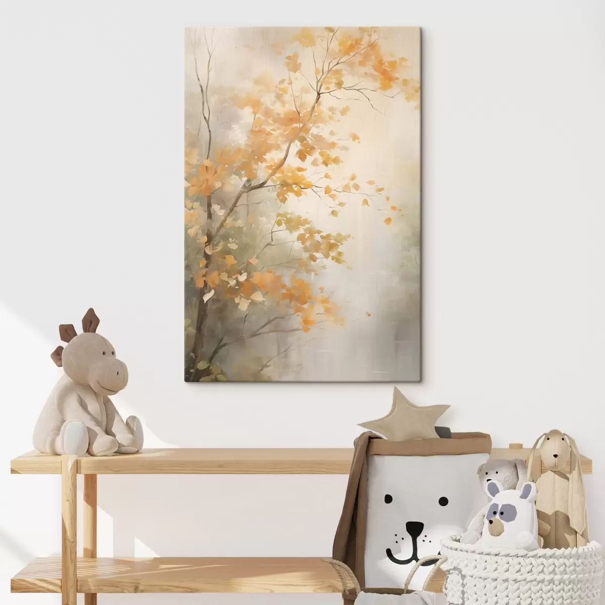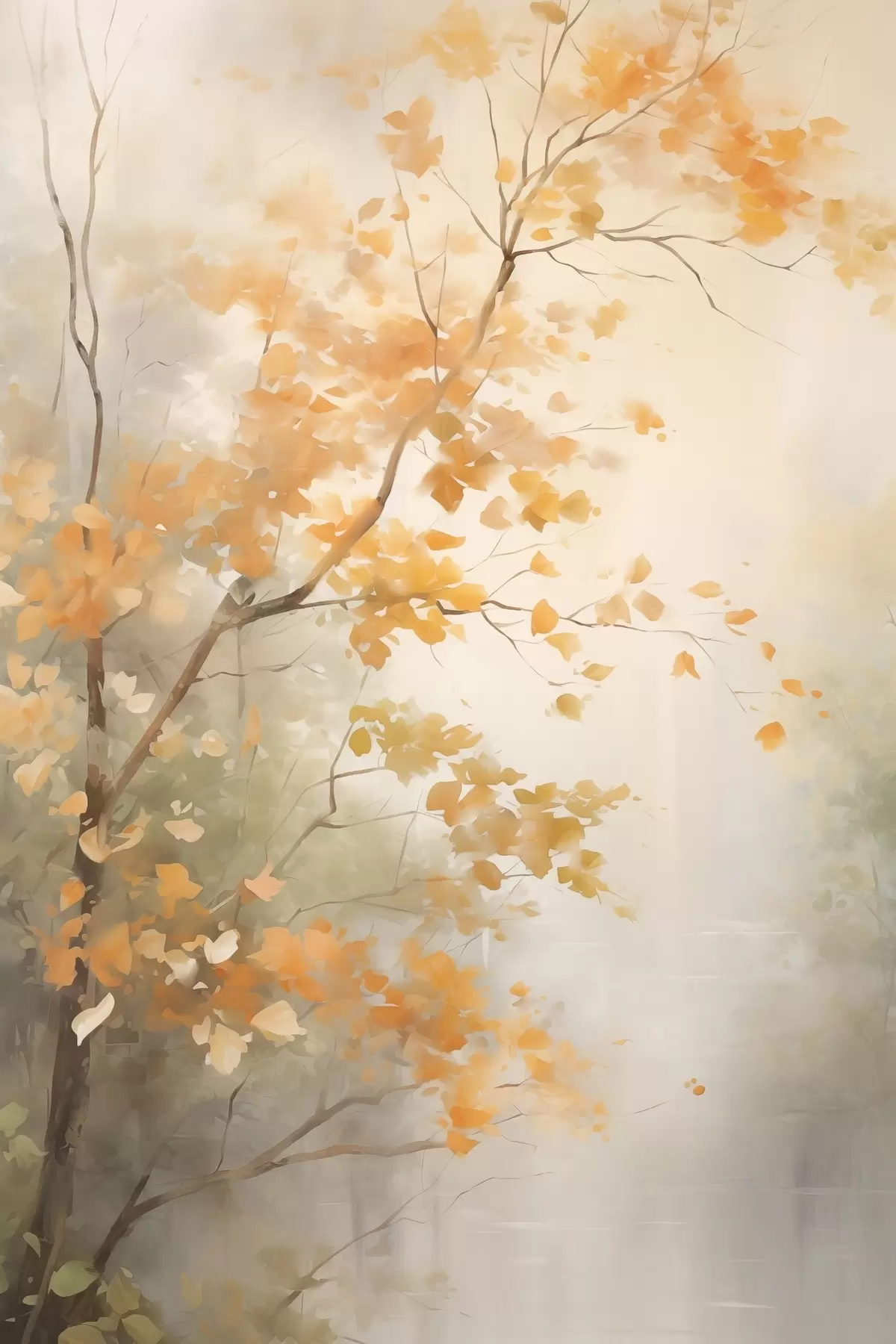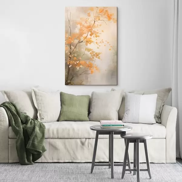 Quadri Rami di alberi autunnali con foglie arancioni in una foresta illuminata da una luce soffusa Nr s45940