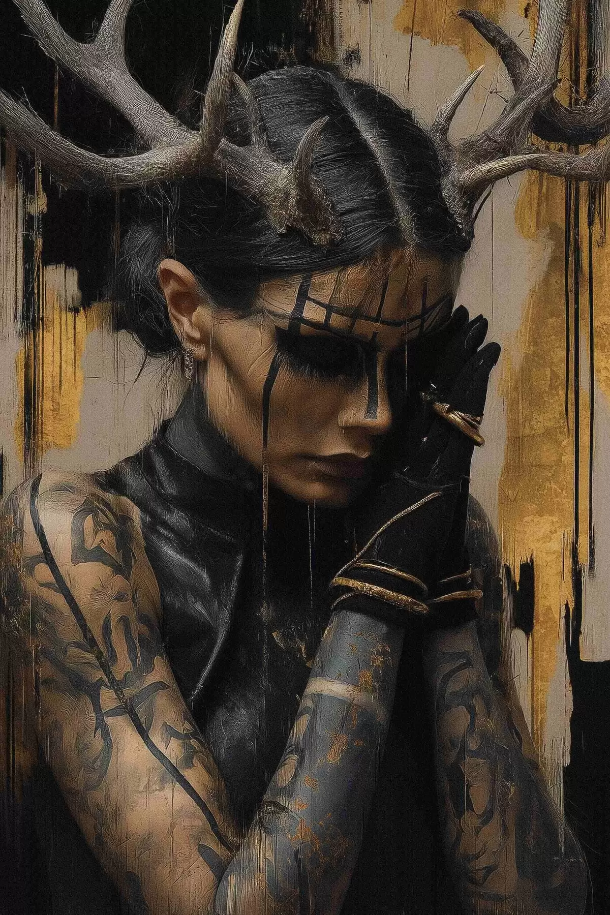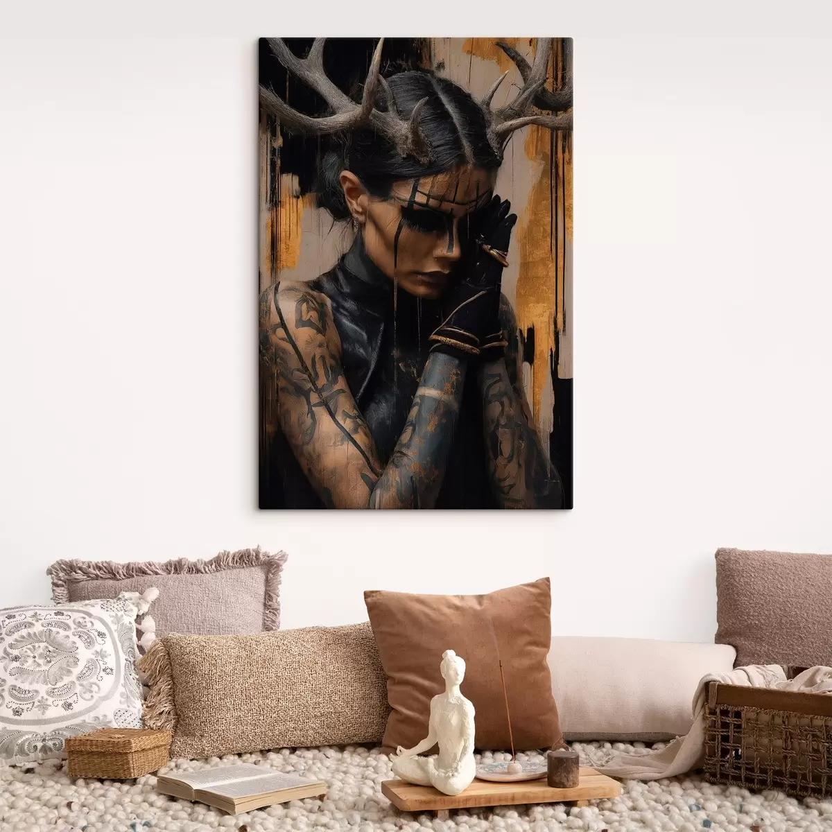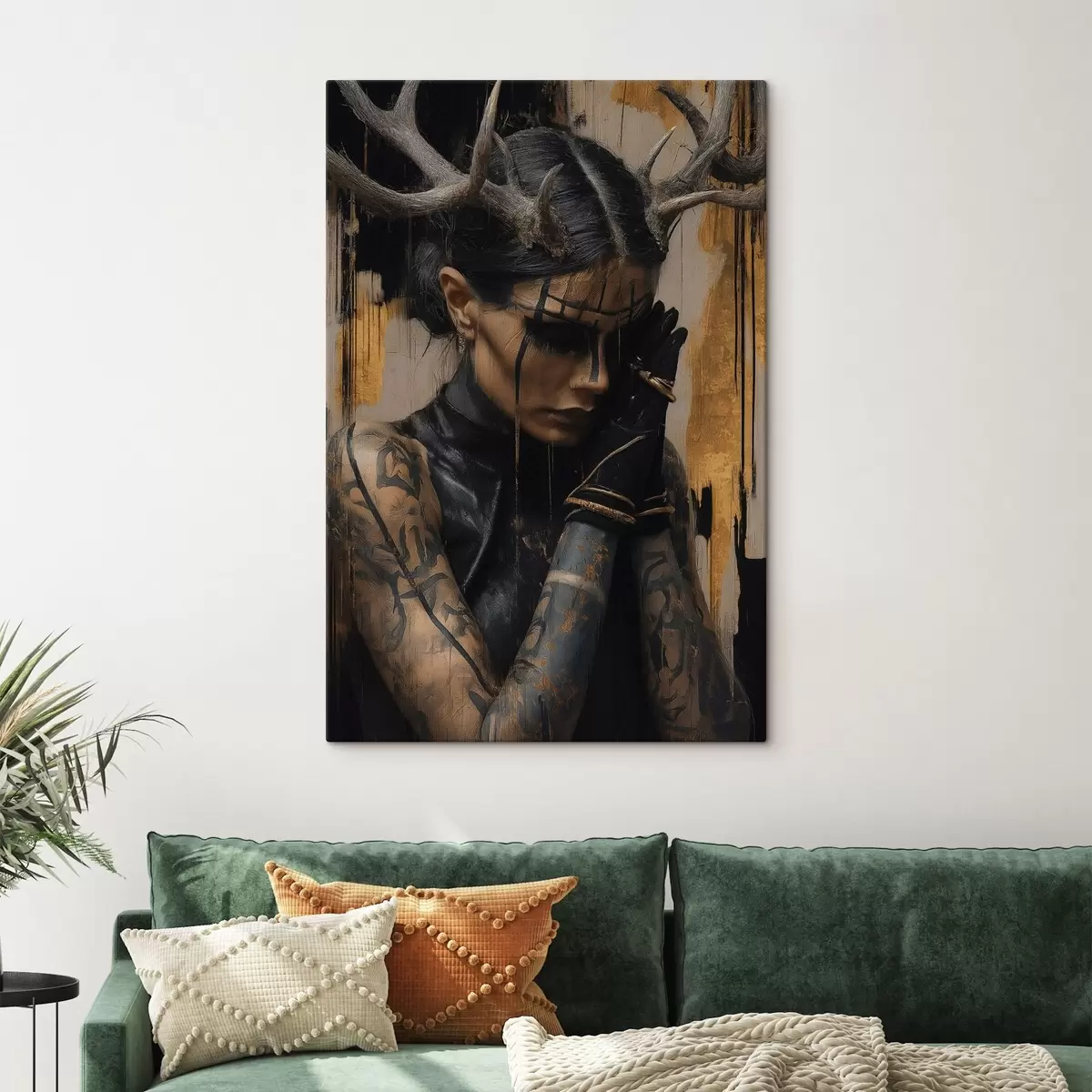 Quadri Donna con le corna dall'aspetto tenebroso con linee nere sul viso Nr s46144