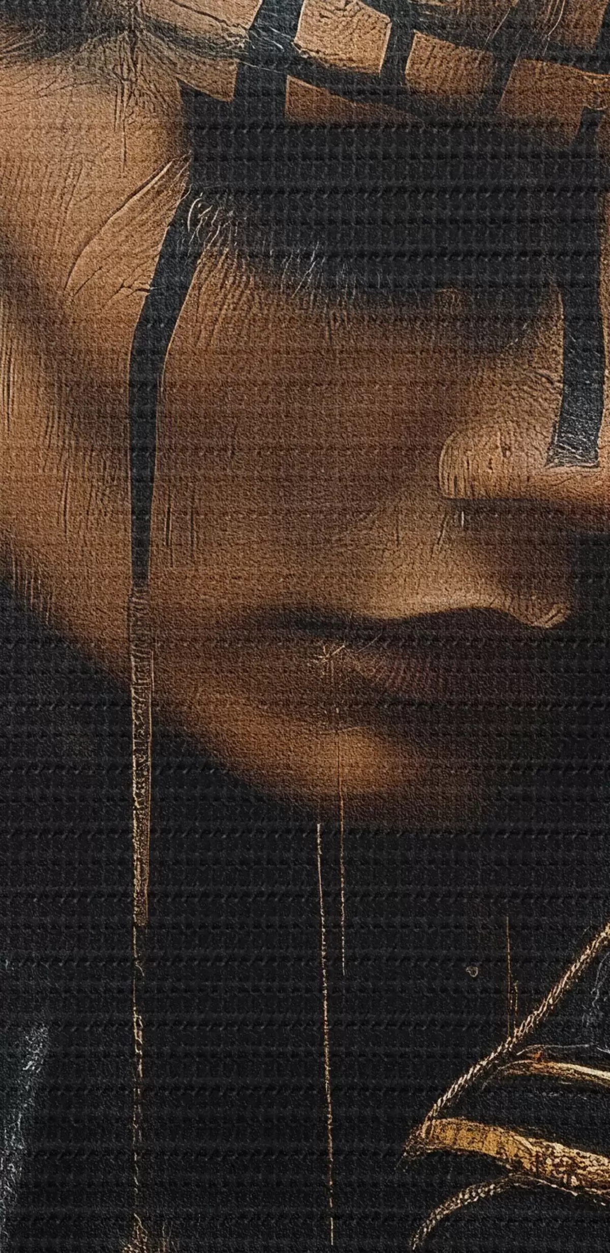 La fine trama dei fili di questa tela ricorda la superficie delle tele degli artisti professionisti.