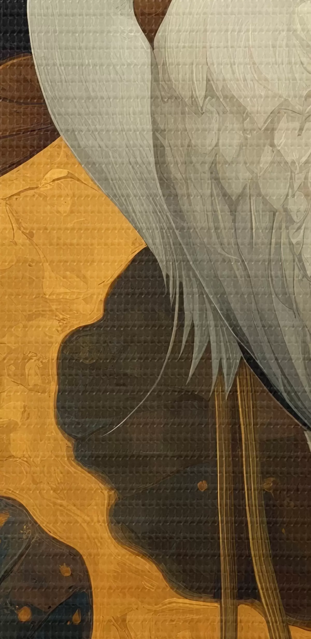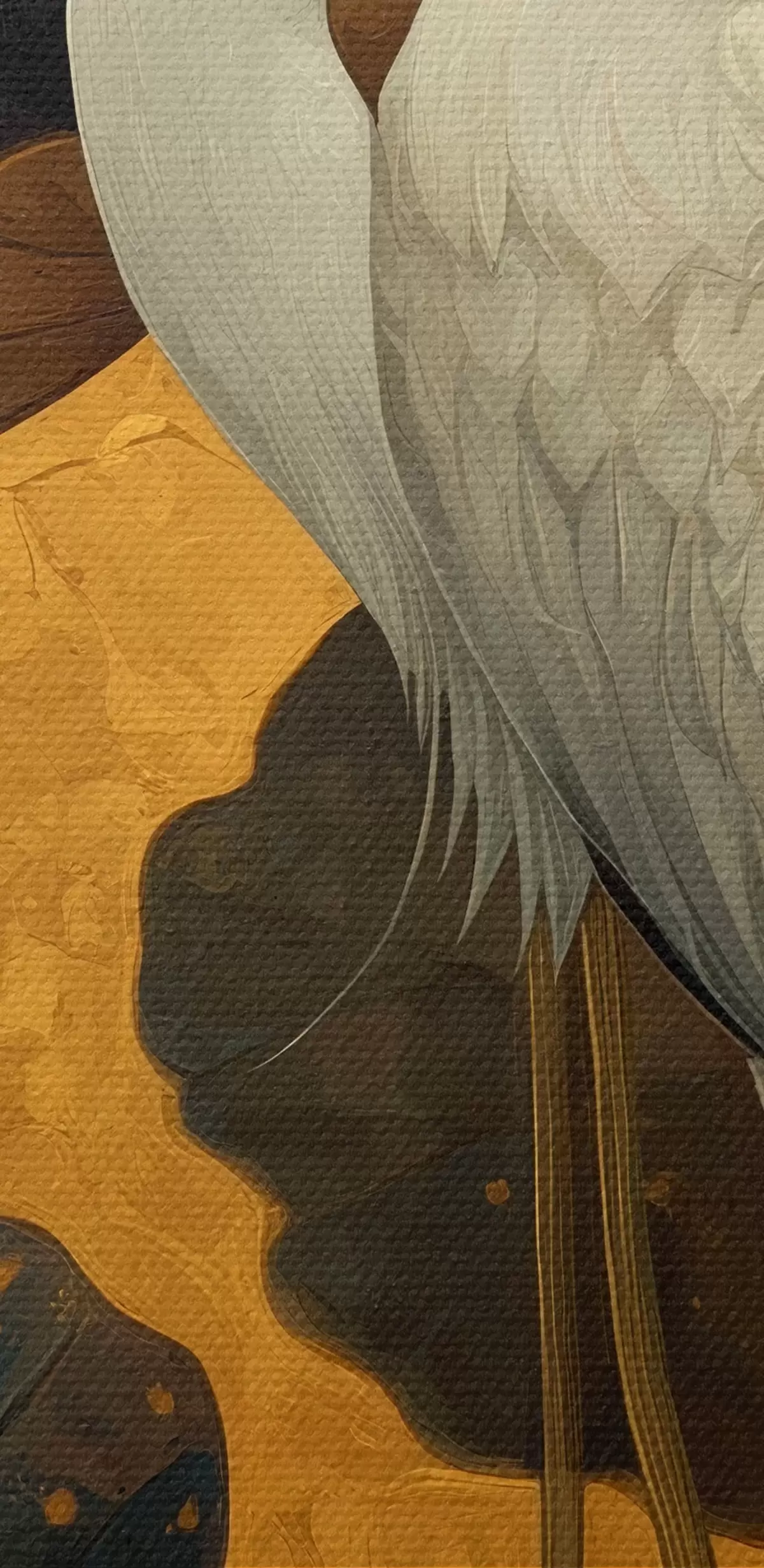 Quadri Airone tra i fiori di loto su uno sfondo caldo Nr s46148
