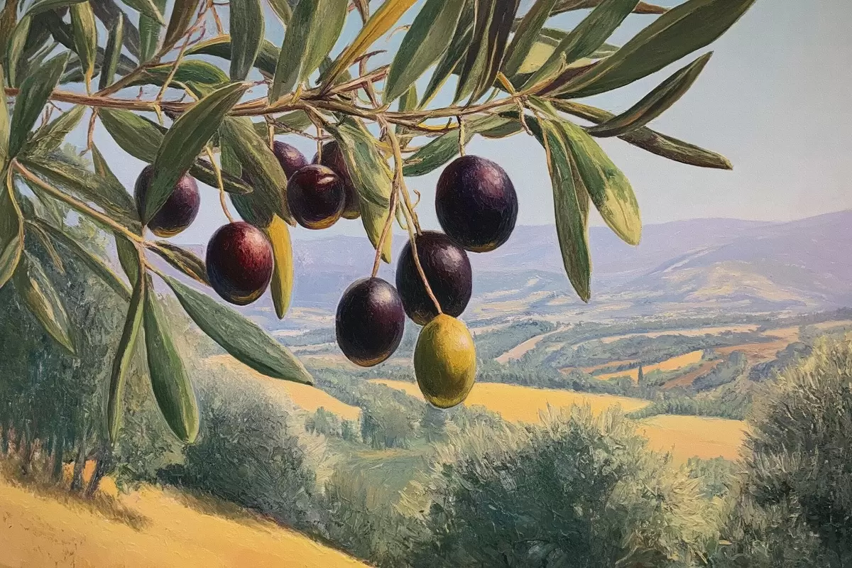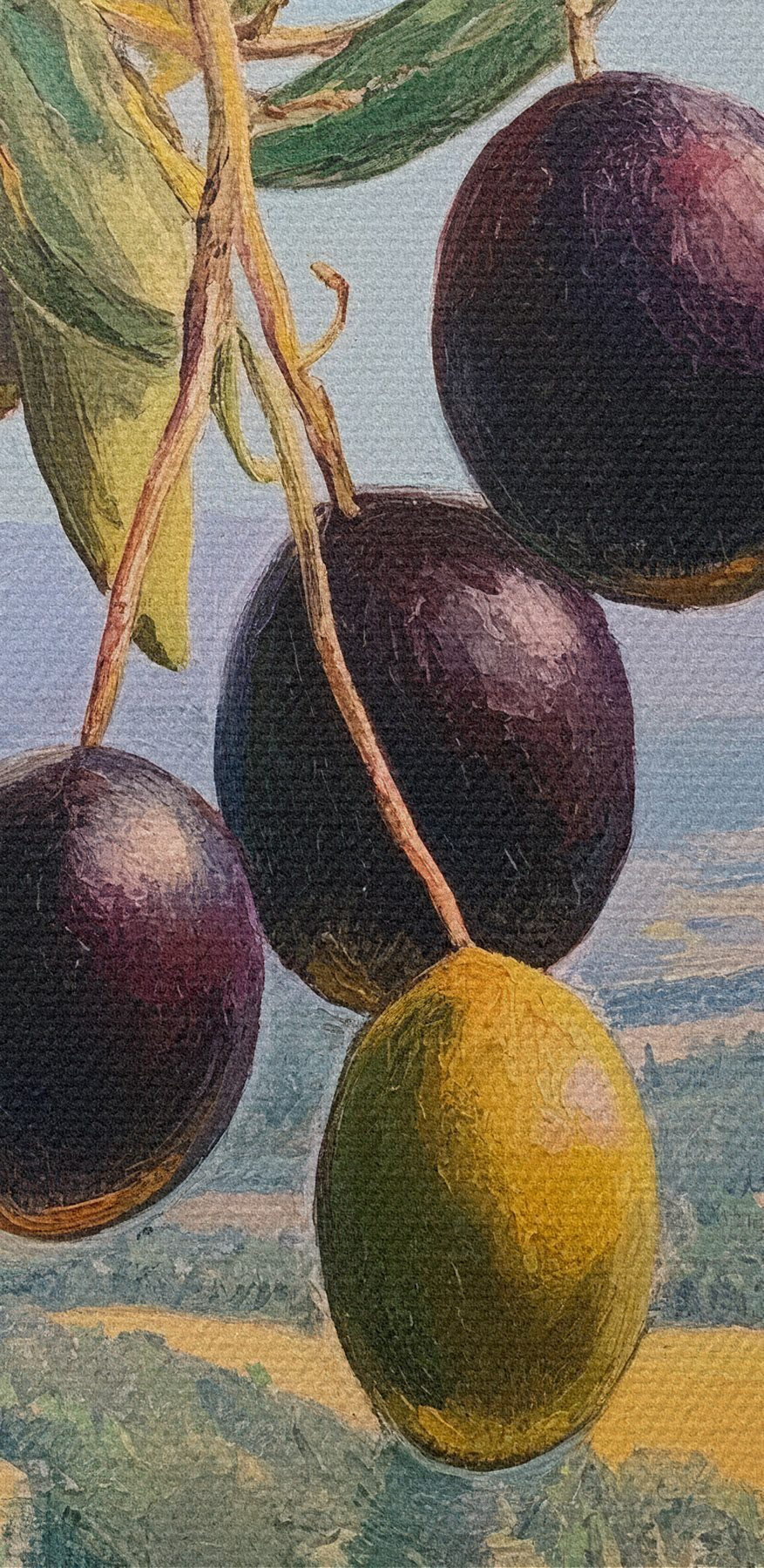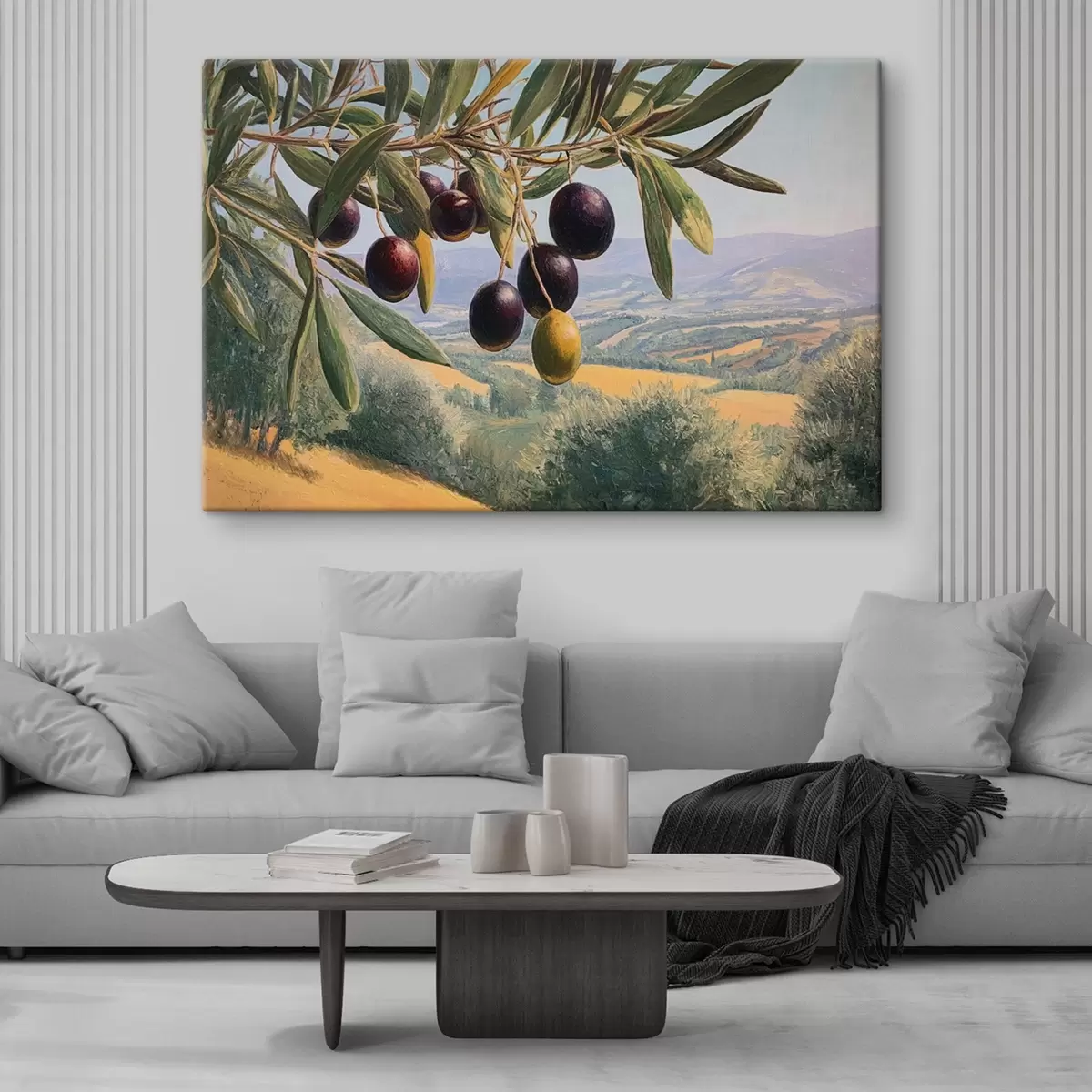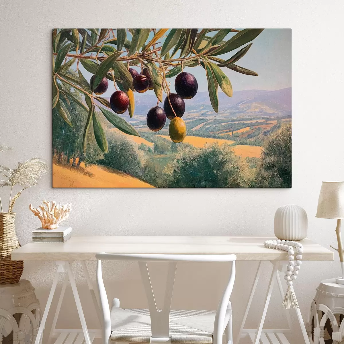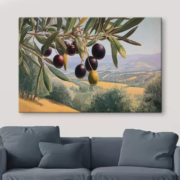 Quadri Ramo d'ulivo con frutti scuri su uno sfondo estivo Nr s46150