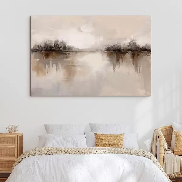 Quadri Paesaggio morbido con un lago dai toni caldi beige-grigi Nr s46158