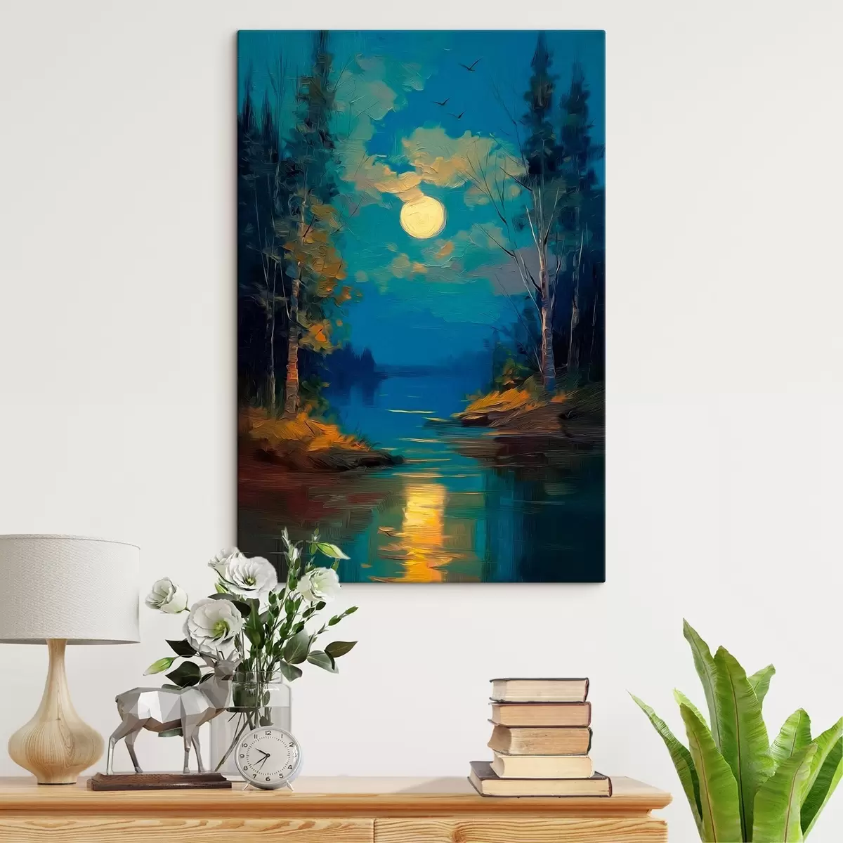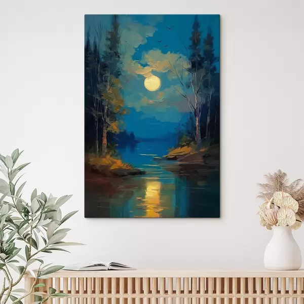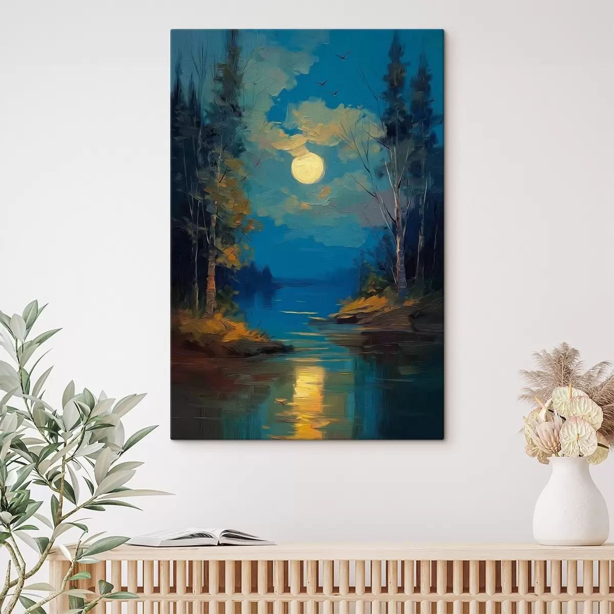 Quadri Chiaro di luna su un fiume calmo tra i pini Nr s46164