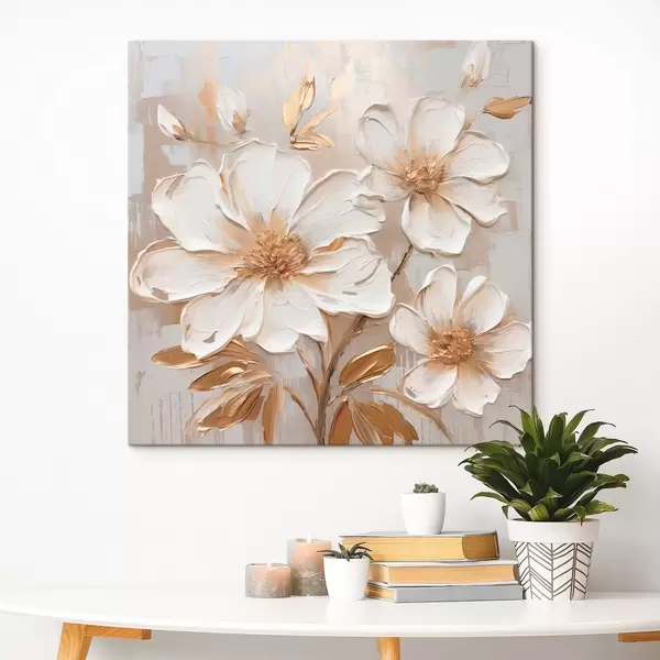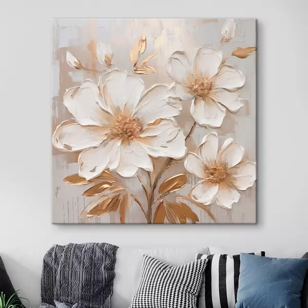 Quadri Fiori testurizzati su sfondo chiaro con tonalità calde Nr s46166