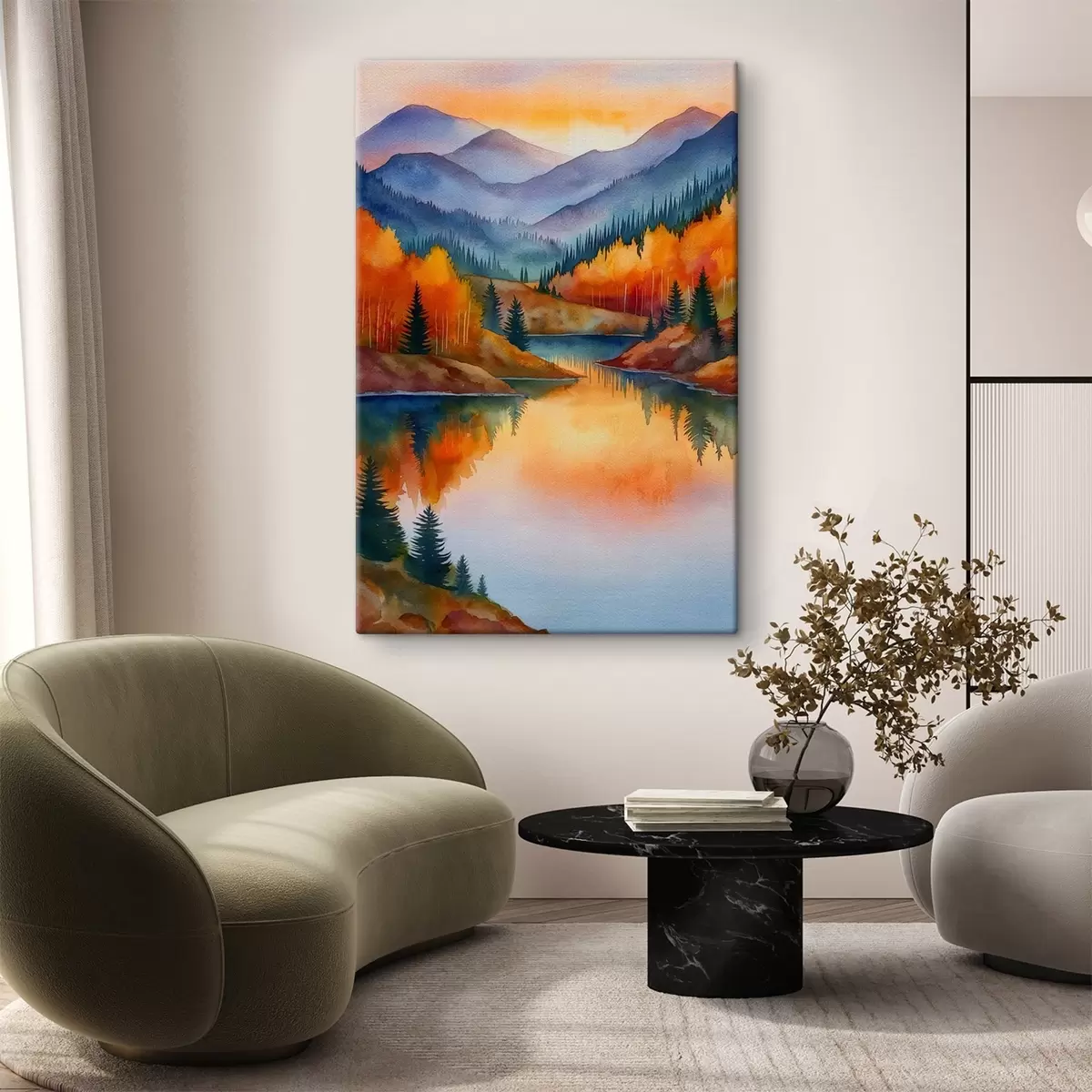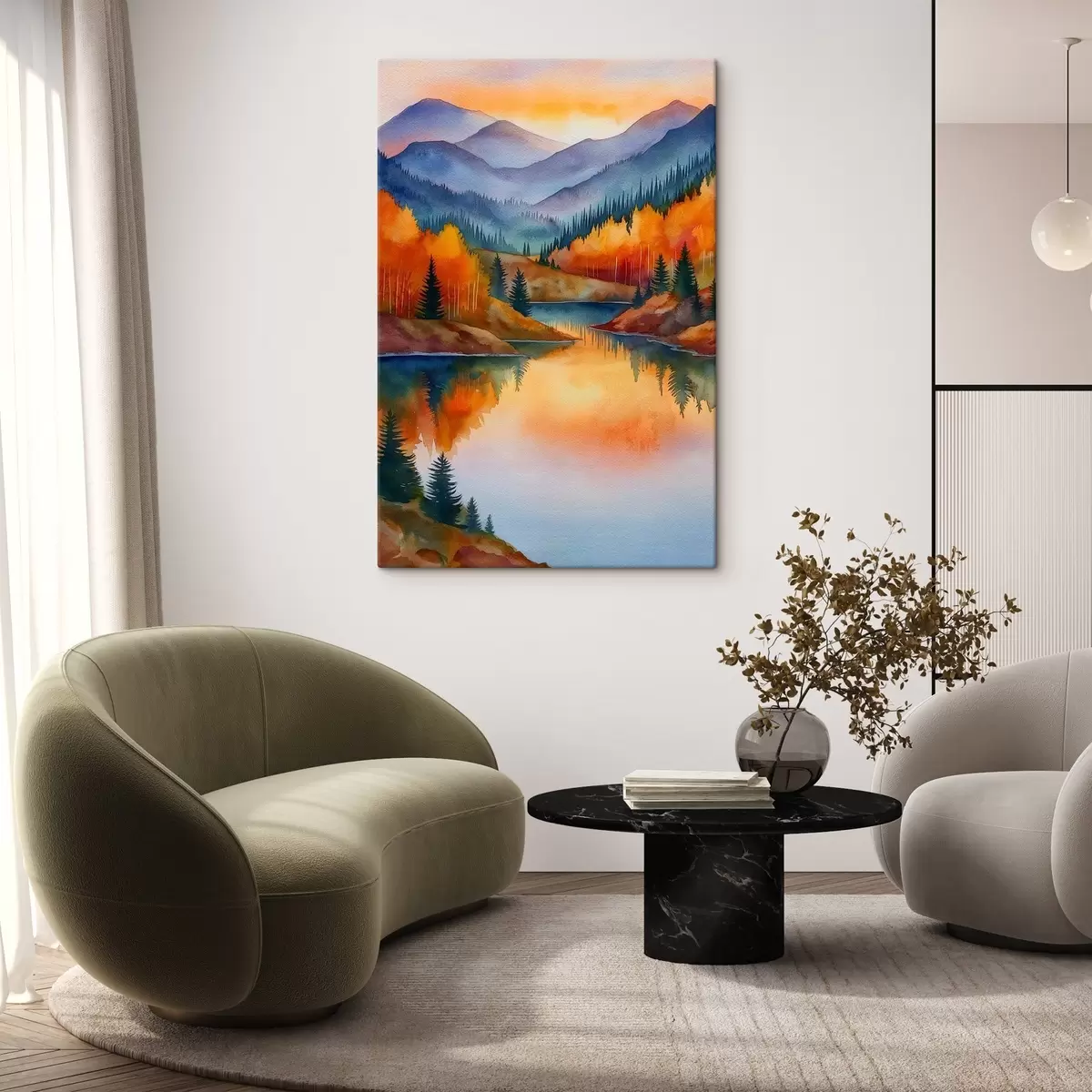 Quadri Paesaggio autunnale con montagne riflesse in un lago calmo Nr s46174