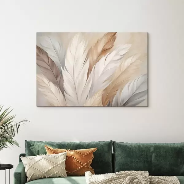 Quadri Morbide piume nei toni del beige e del grigio Nr s46190