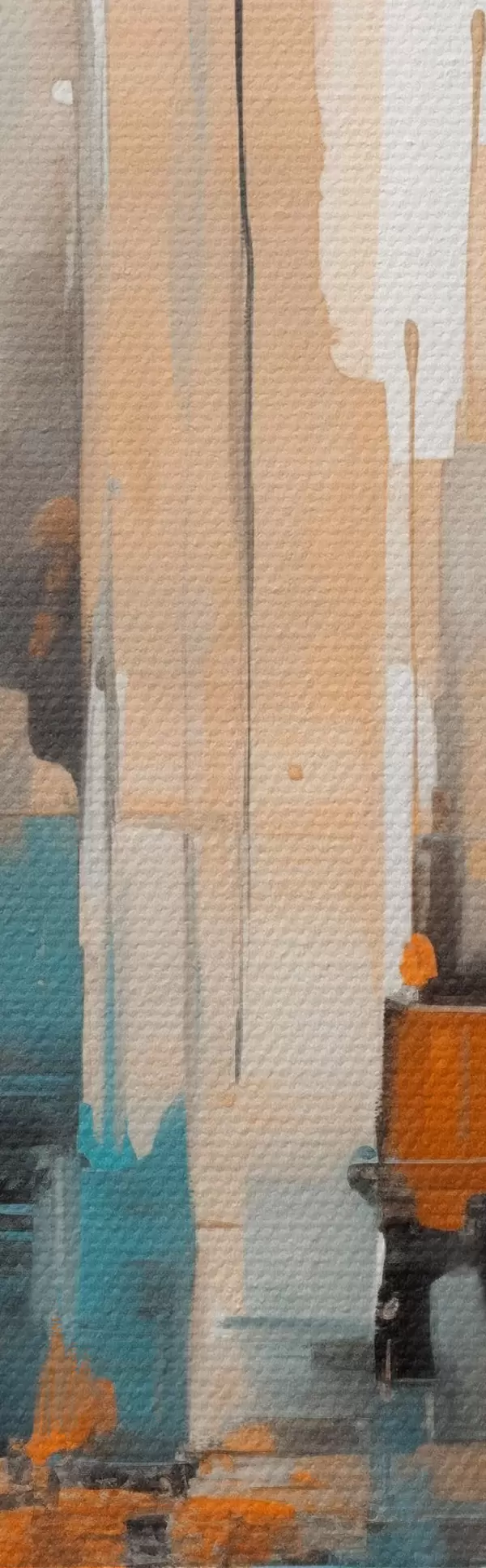 Quadri Paesaggio urbano astratto con pennellate verticali arancioni, verde acqua e marroni e forme geometriche Nr s46266