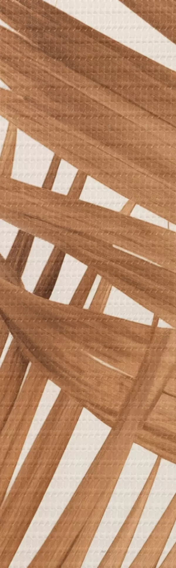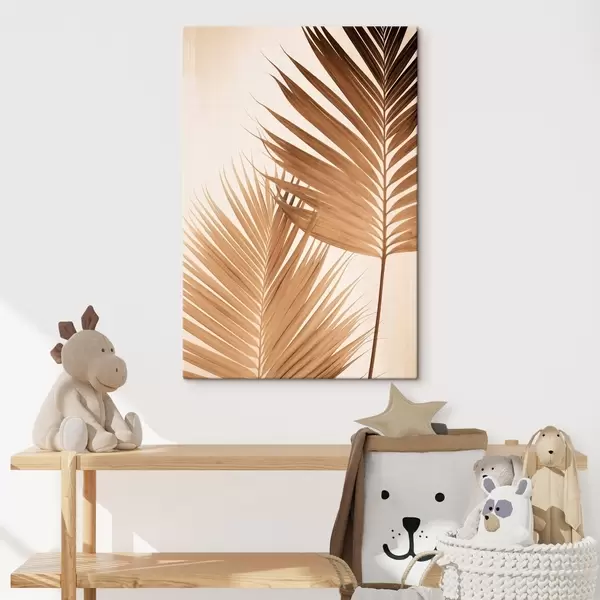 Quadri Foglie di palma nei toni del marrone, sfondo neutro, stile minimalista, illuminazione naturale, atmosfera tropicale Nr s46274