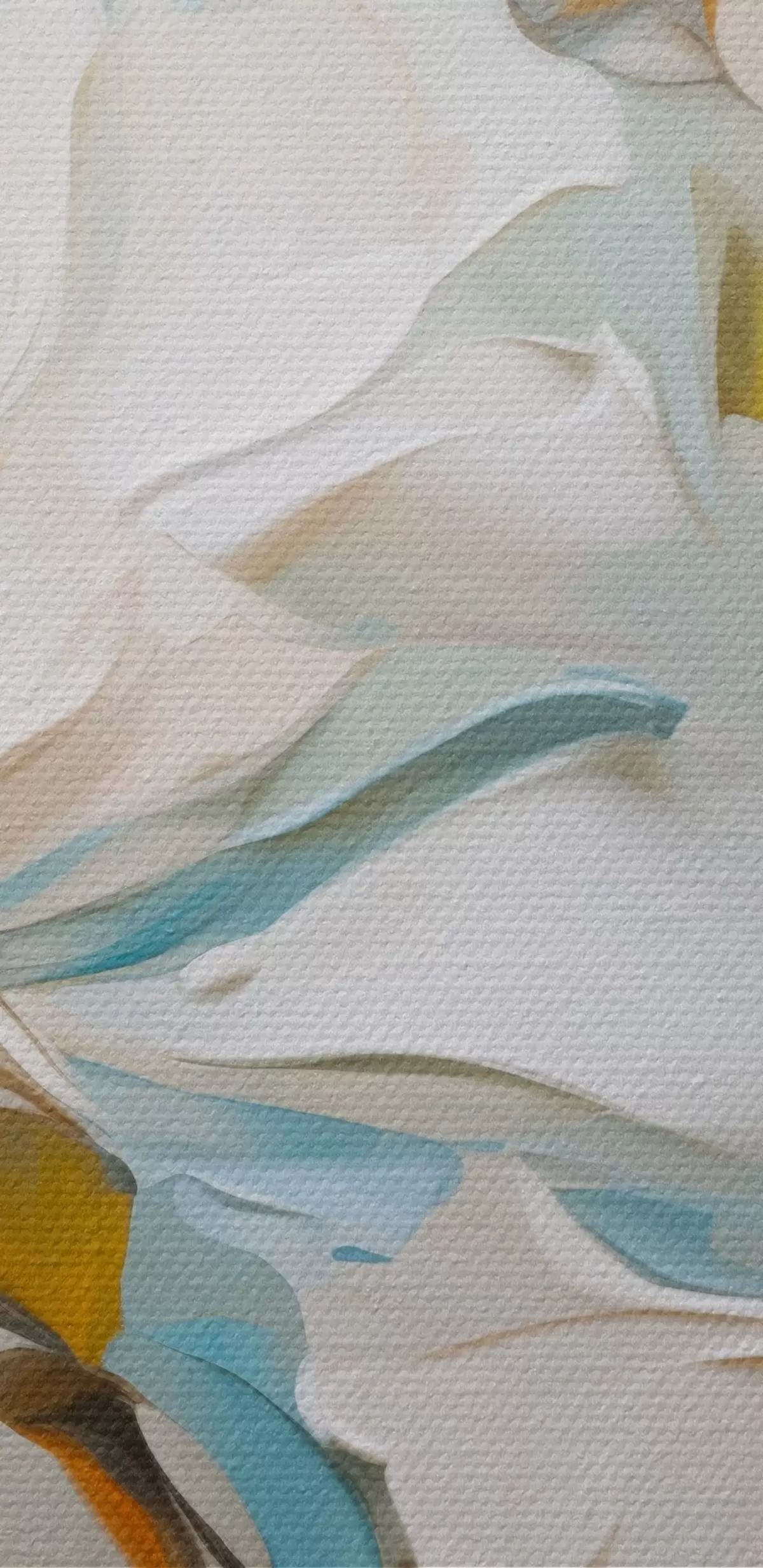 Quadri Fiori di magnolia bianchi, sfondo azzurro con pennellate morbide, stile pittura a olio, texture impastata Nr s46276