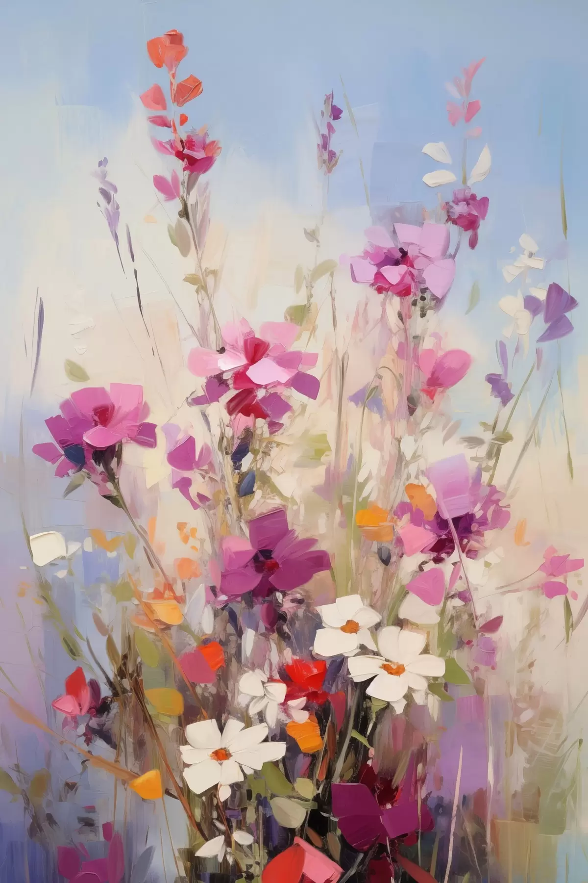 Quadri Fiori dai vivaci colori rosa, bianco e verde su uno sfondo tenue dai toni pastello Nr s46278