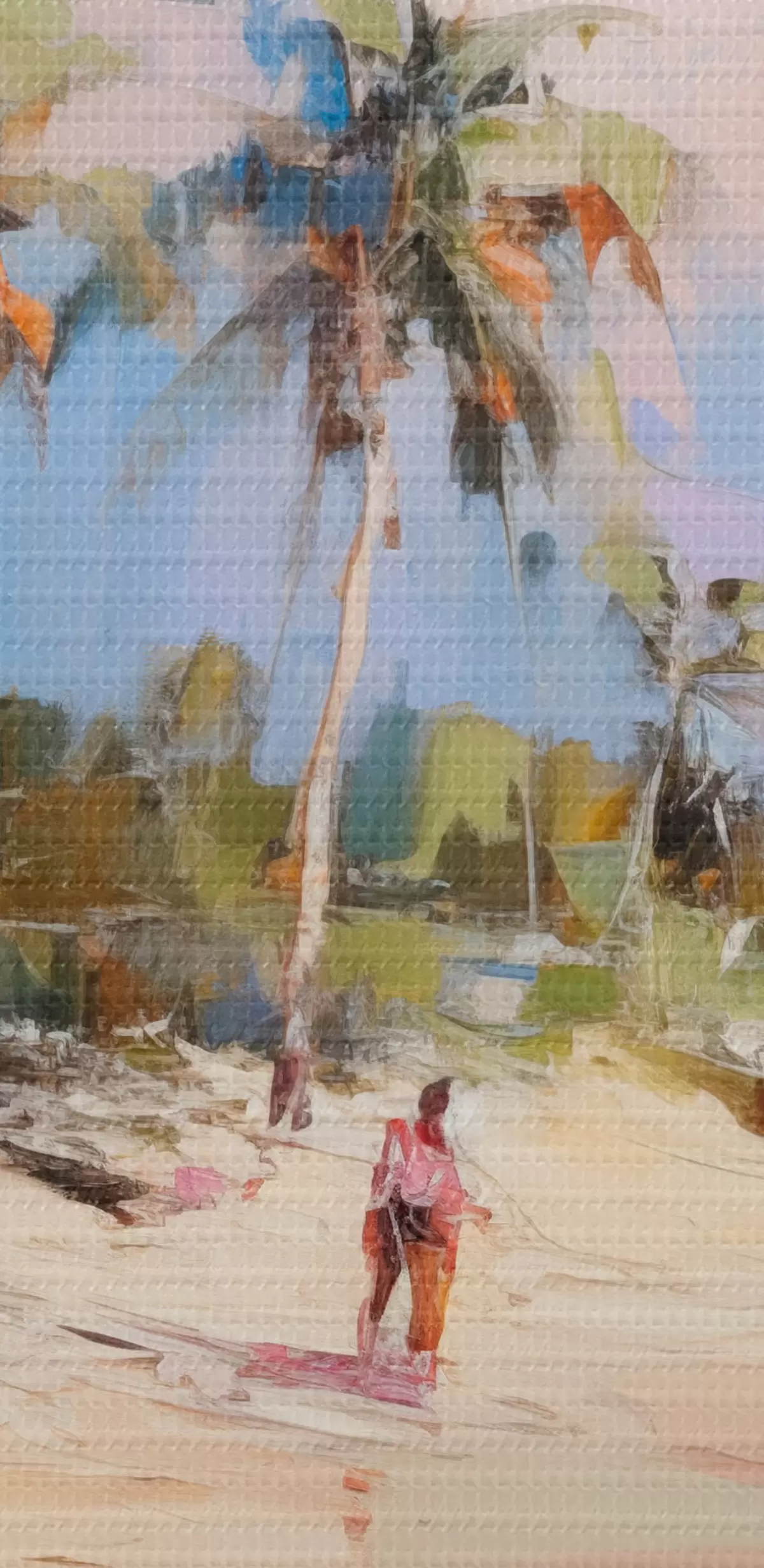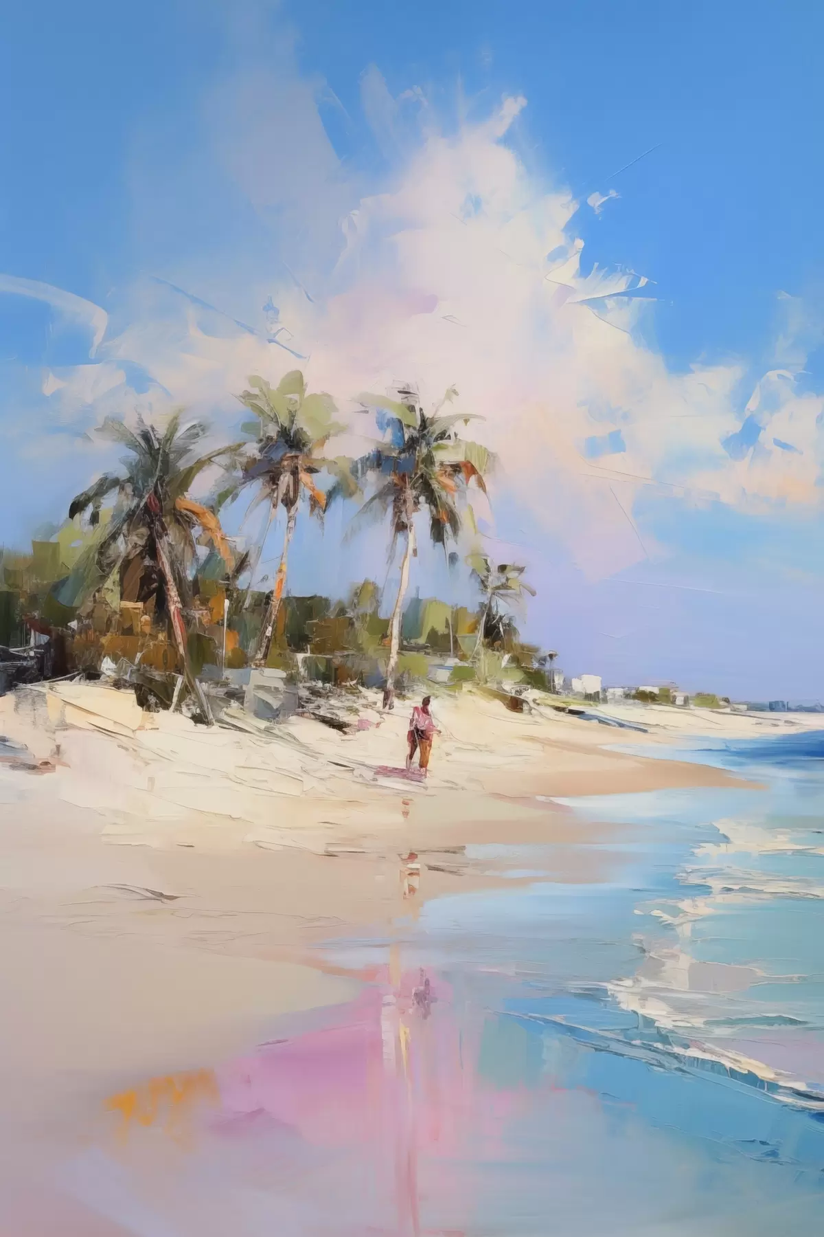 Quadri Paesaggio astratto, una spiaggia con palme, una giornata di sole splendente con cielo azzurro e qualche nuvola Nr s46284