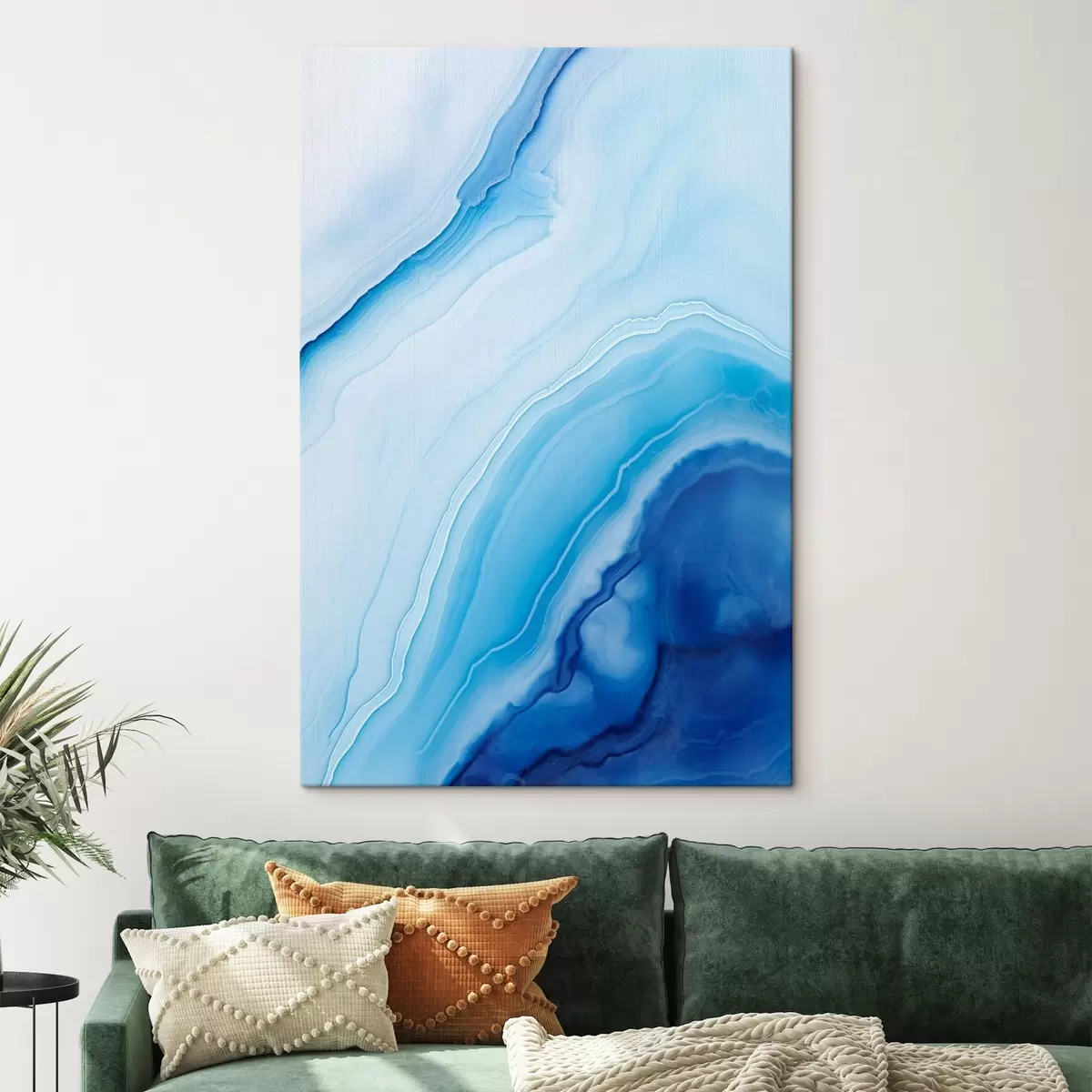 Quadri Stampa astratta blu e bianco agata, linee e sfumature vorticose, texture liscia, arte moderna, minimalista Nr s46290