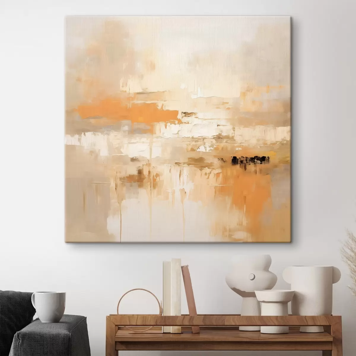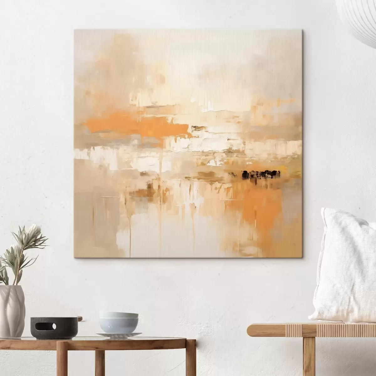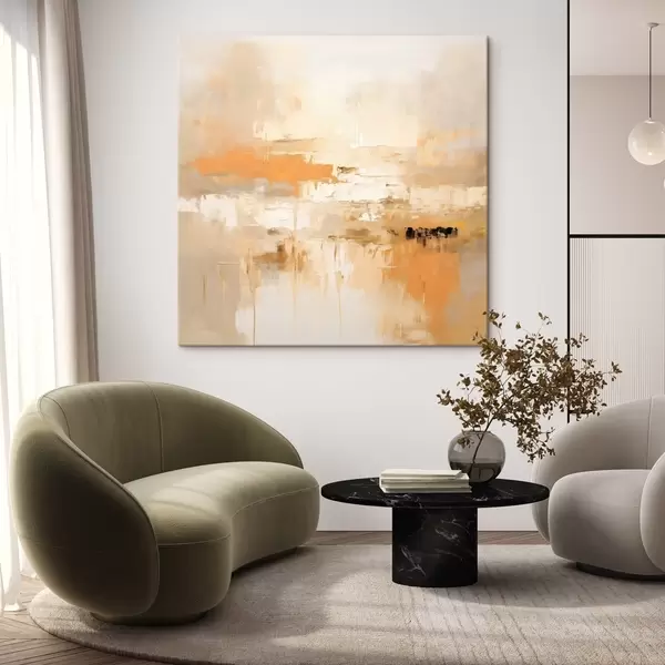 Quadri Astrattismo paesaggistico in stile oleoso con tonalità arancioni e beige Nr s46314
