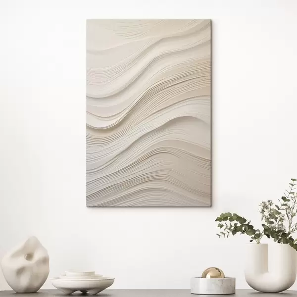 Quadri Onde in rilievo a strati color sabbia, texture morbida Nr s46484