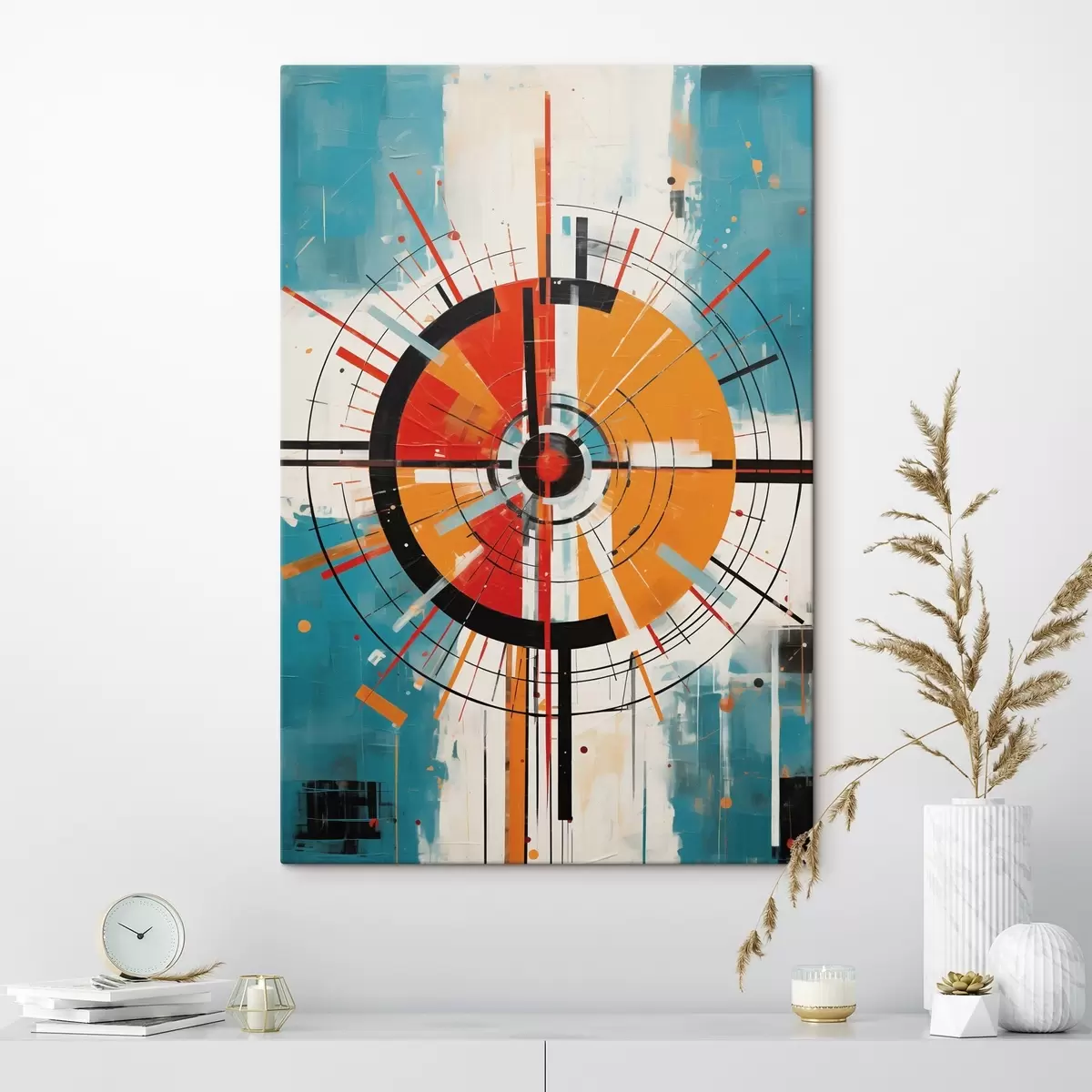 Quadri Bersaglio concentrico con segmenti verde acqua e arancione Nr s46486