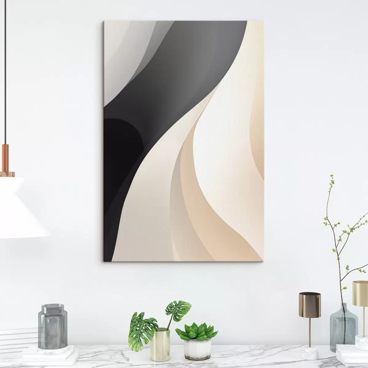 Quadri Curve eleganti e sovrapposte nei colori antracite, avorio e sabbia Nr s46493