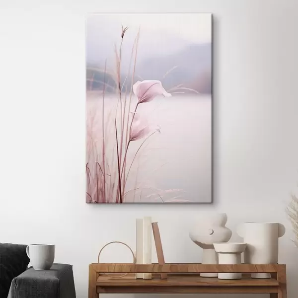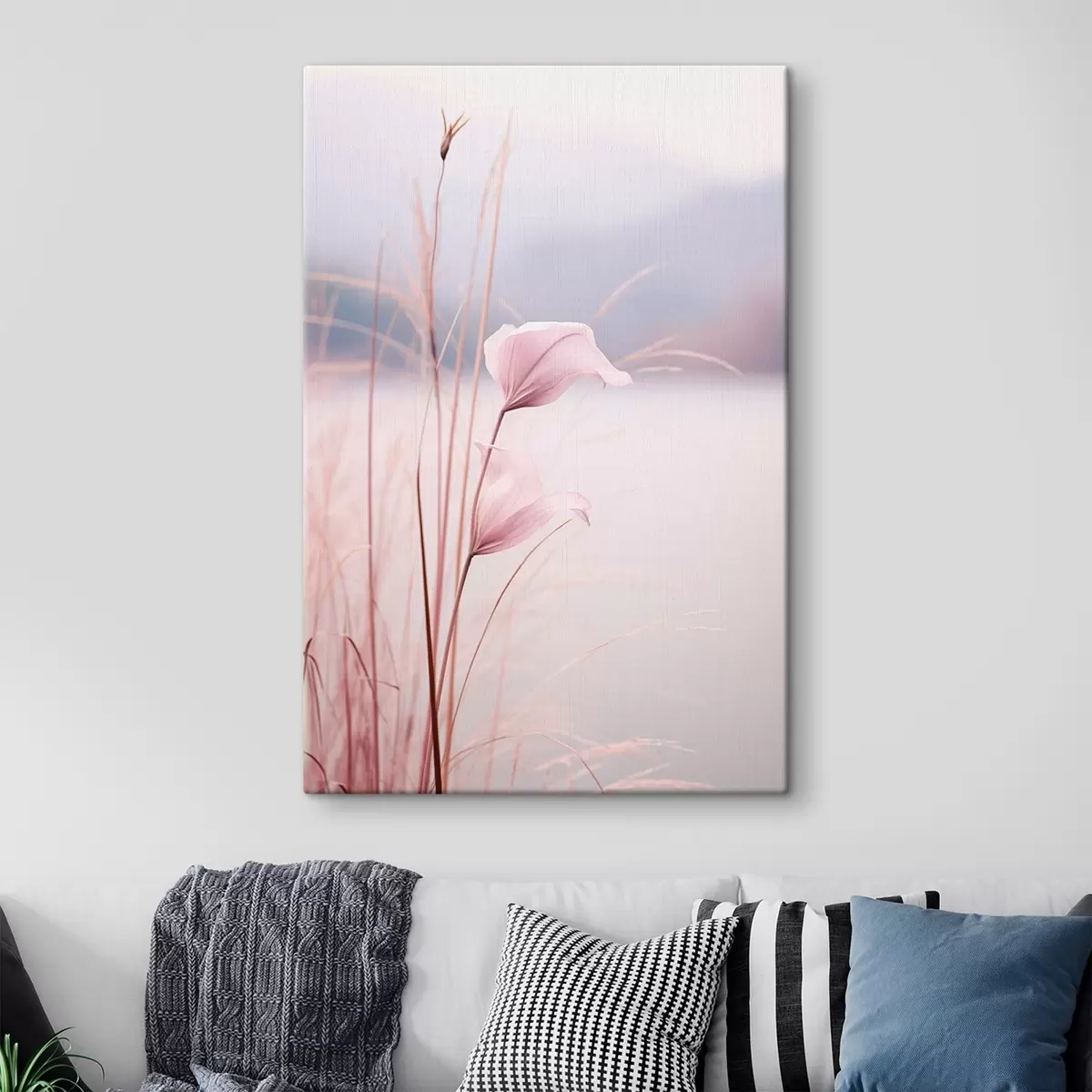 Quadri Delicati fiori rosa in riva al lago tranquillo Nr s46503