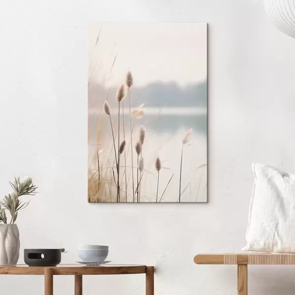 Quadri Canneti morbidi in riva a un lago nebbioso, tonalità beige pastello Nr s46504