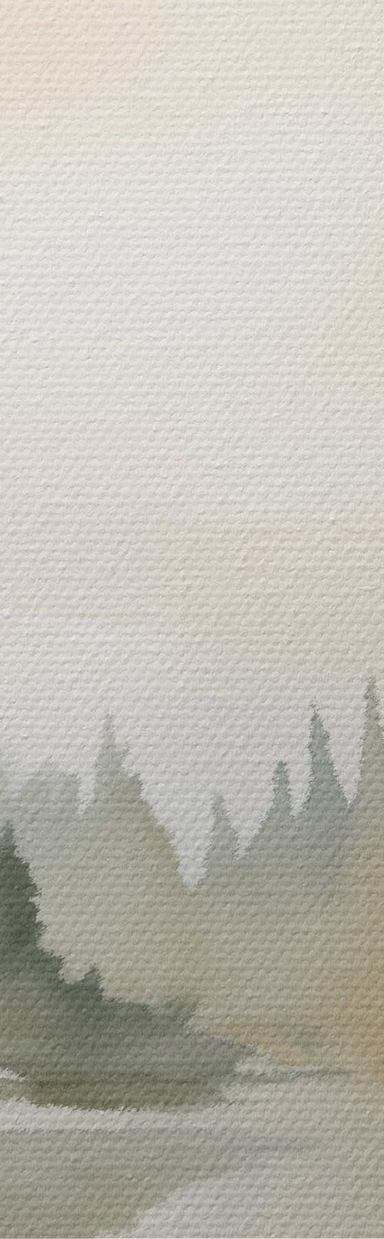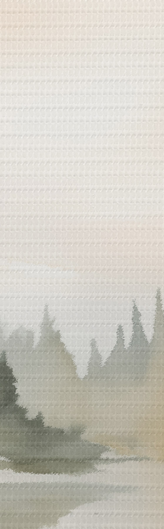 carta da parati Bosco di conifere nebbioso su un fiume tranquillo, stile acquerello nr. s46507