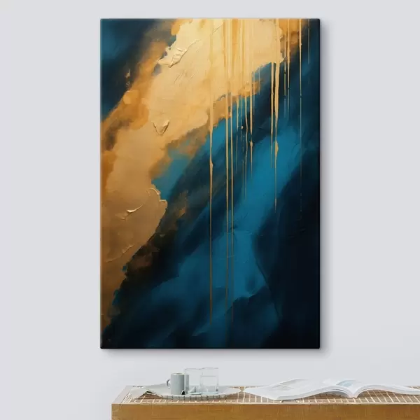Quadri Astratto verde acqua e blu intenso con riflessi caldi e fluidi Nr s46509