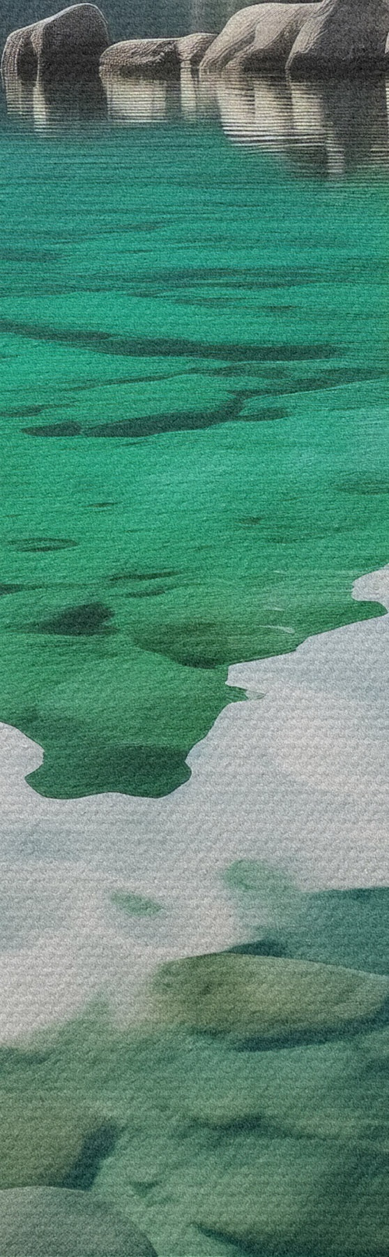 Quadri Lago alpino color smeraldo con rocce sottostanti e vette imponenti Nr s46515