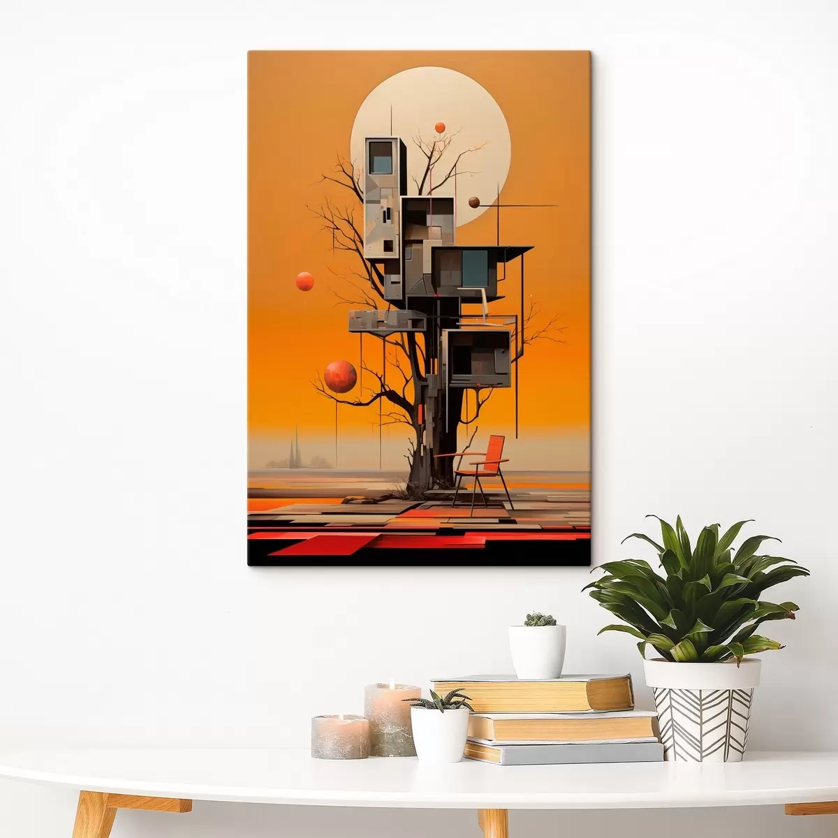 Quadri Surreale casa sull'albero su sfondo arancione Nr s46526