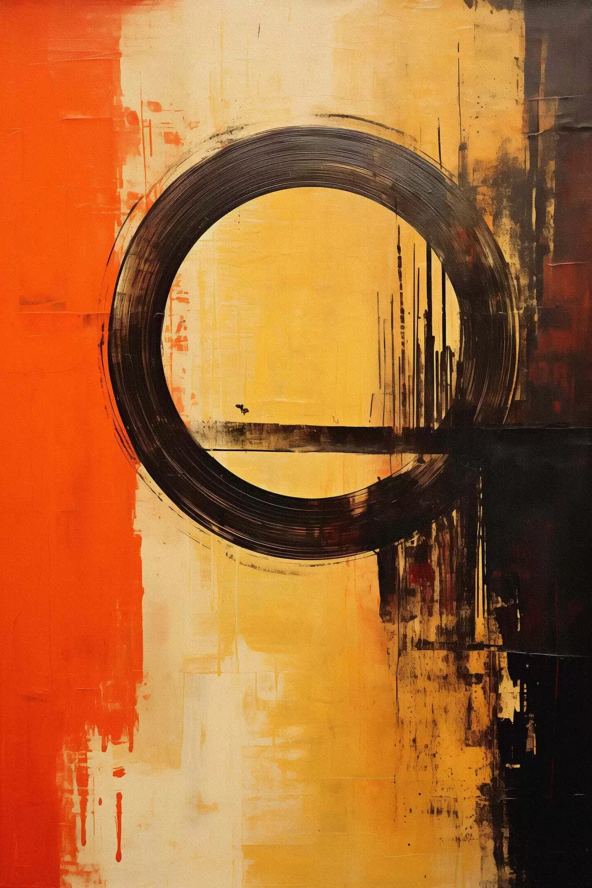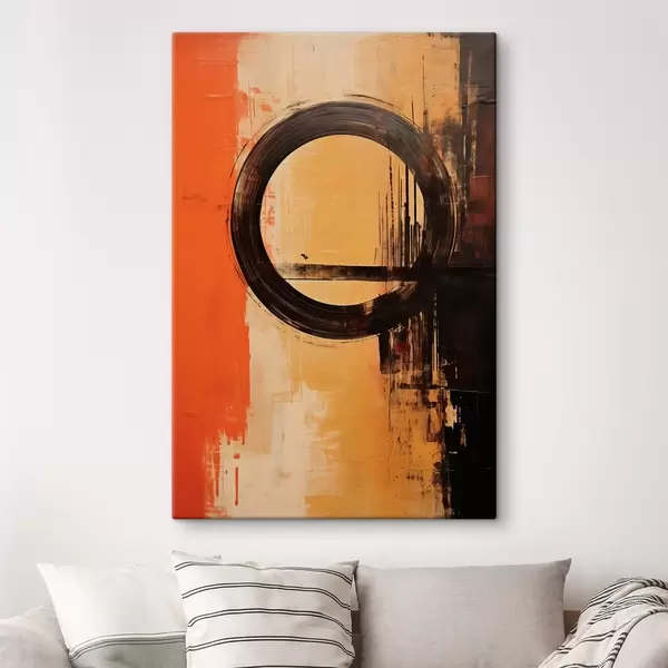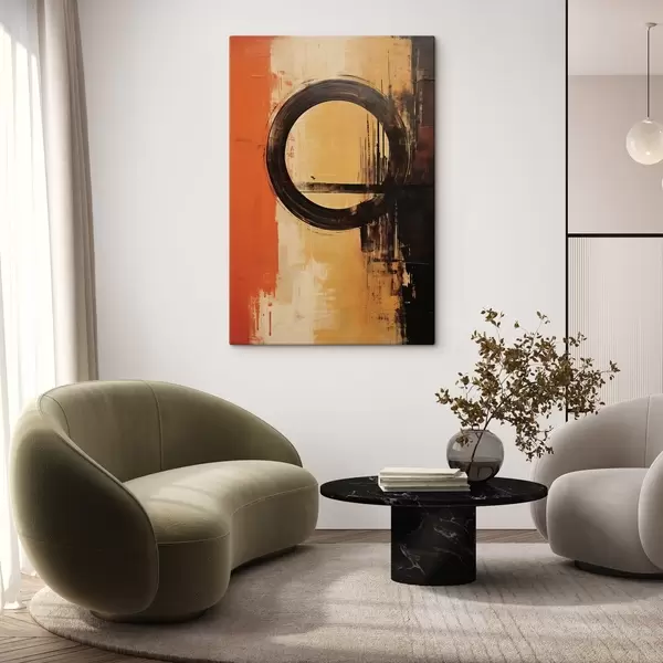 Quadri Astratto con un anello nero su sfondo terracotta-sabbia Nr s46529