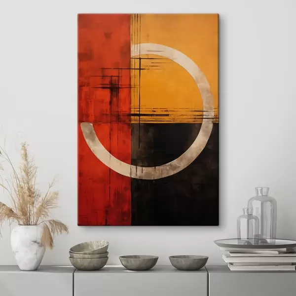 Quadri Cerchio astratto su sfondo rosso-nero con linee Nr s46535