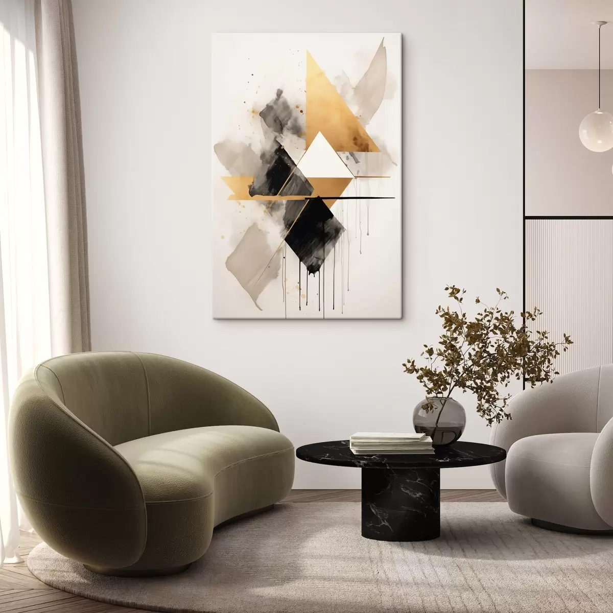 Quadri Geometria con triangoli e un rombo nero, tratti beige Nr s46539