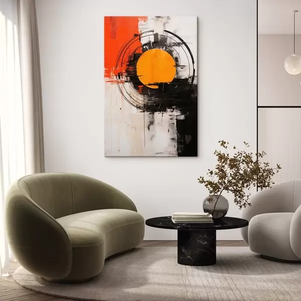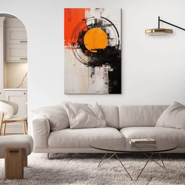 Quadri Disco arancione all'interno di un anello nero, pennellate e schizzi Nr s46550