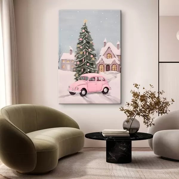 carta da parati Auto rosa e albero di Natale decorato fuori dalla casa nr. s46621