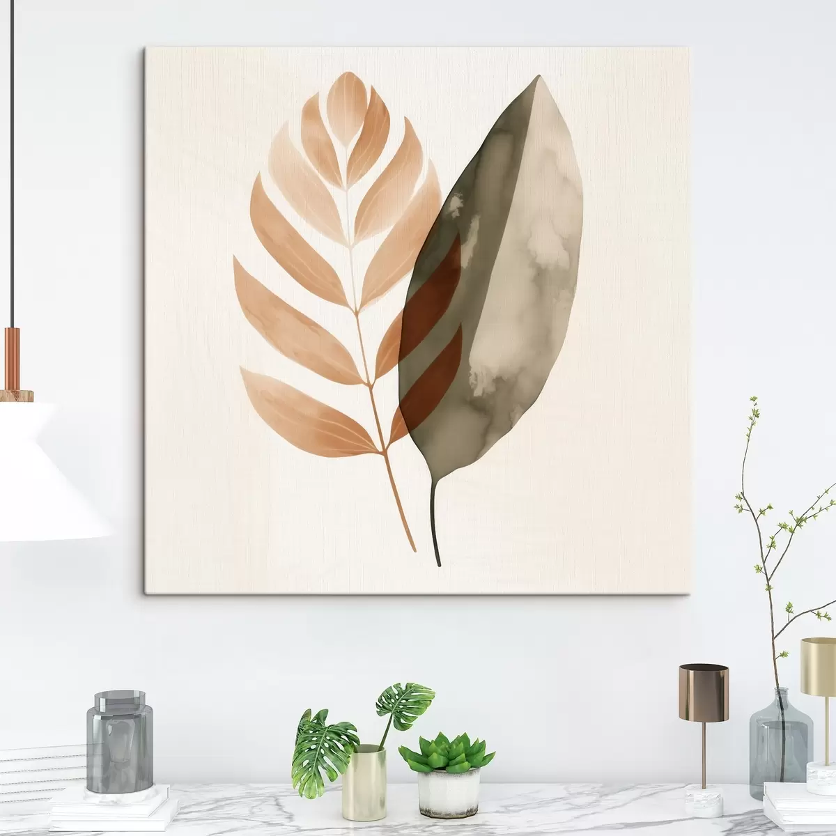 Quadri Una coppia di sagome di foglie in stile astratto acquerellato Nr s46645