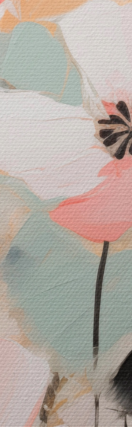 Quadri Fiori rosa e neri con foglie, colori pastello tenui, composizione floreale astratta, arte minimalista Nr s46688