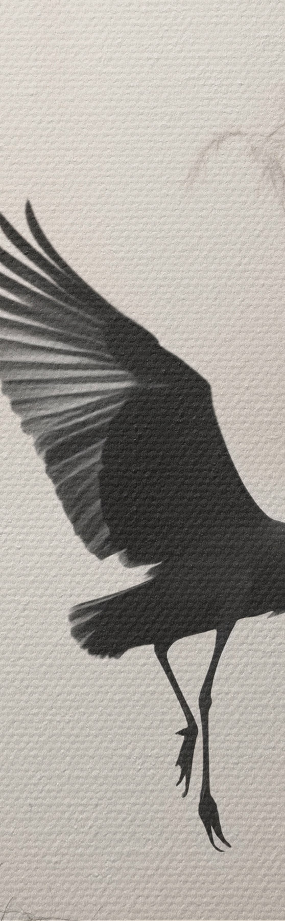 carta da parati Un airone bianco con le ali spiegate, che vola vicino ad alte canne, composizione minimalista in bianco e nero nr. s46694