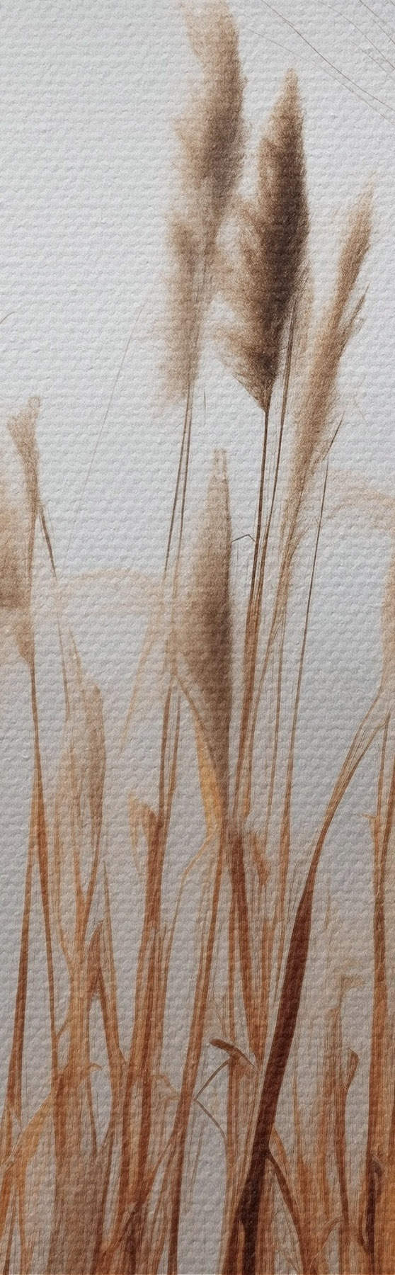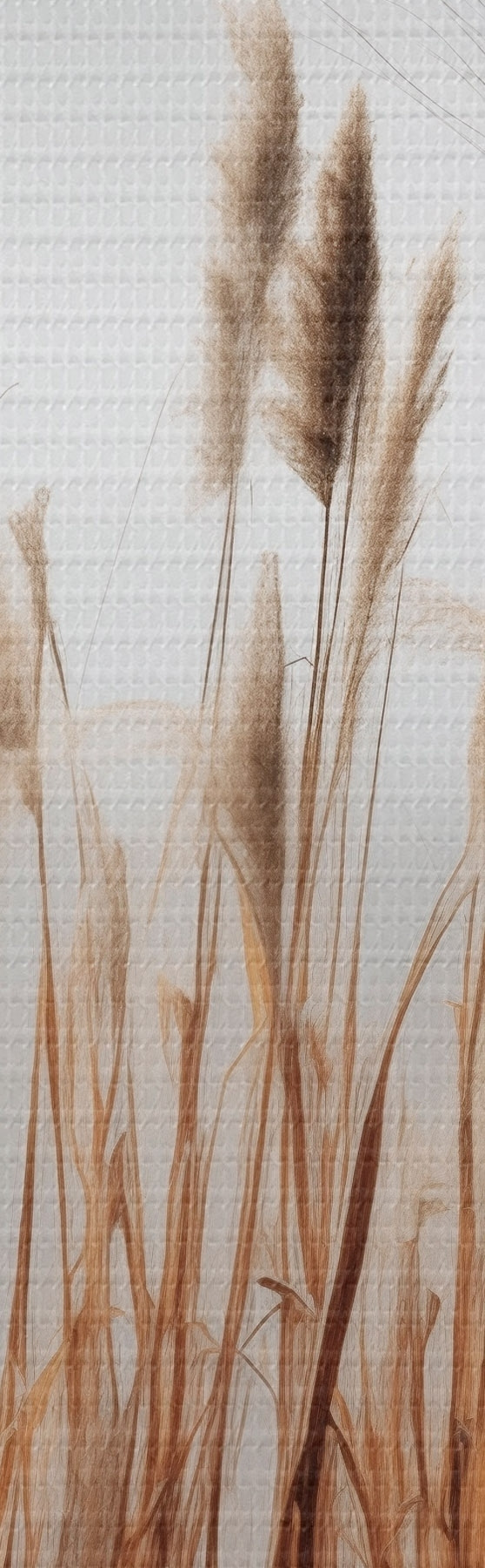 Quadri Alte canne che crescono in uno specchio d'acqua, l'acqua riflette le canne, sfondo nebbioso, luce soffusa, scena naturale Nr s46696