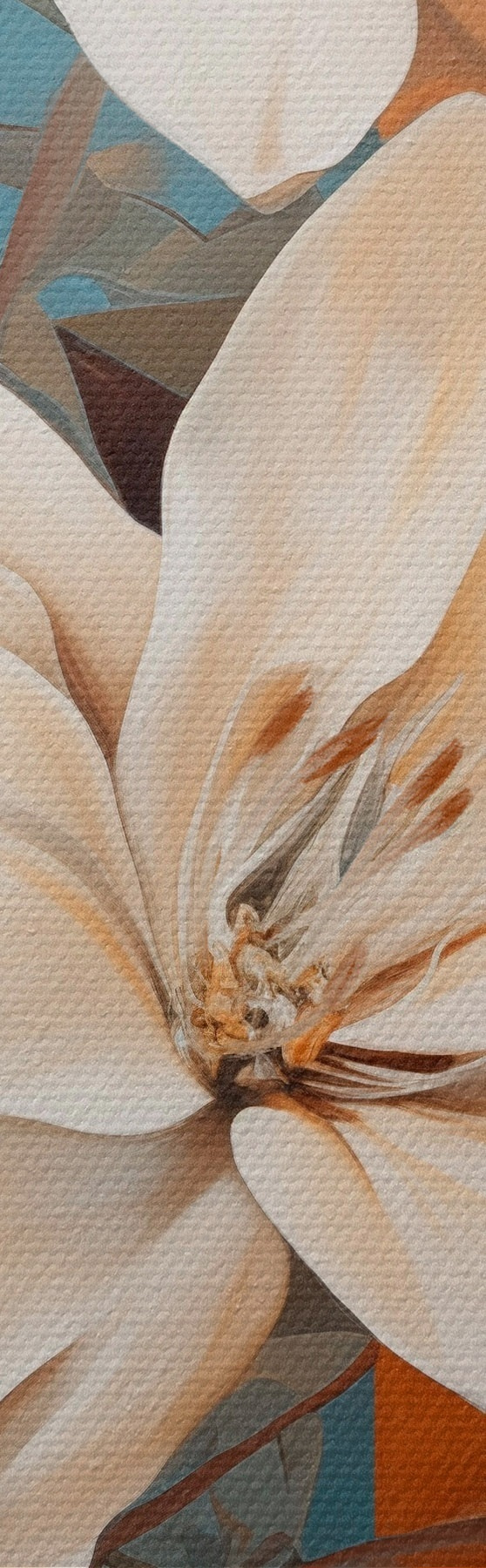 Quadri Fiori e foglie bianchi astratti su sfondo marrone e blu con forme astratte, in stile minimalista Nr s46710