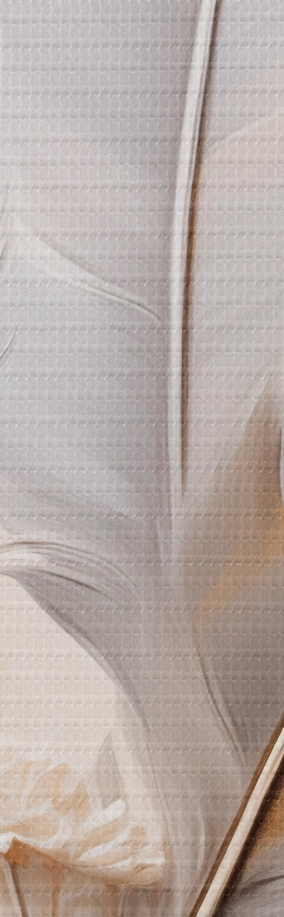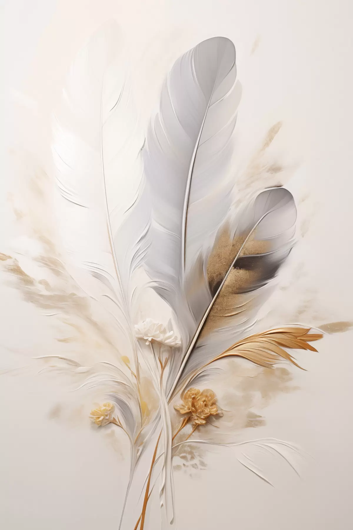 Quadri Piume astratte, circondate da pennacchi beige e marroni, morbide e delicate, su uno sfondo beige chiaro. Nr s46712