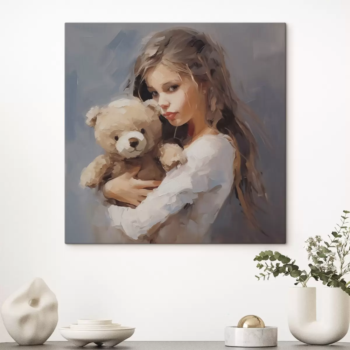 carta da parati Ragazza con un orsacchiotto, imitazione di un dipinto nr. s46746