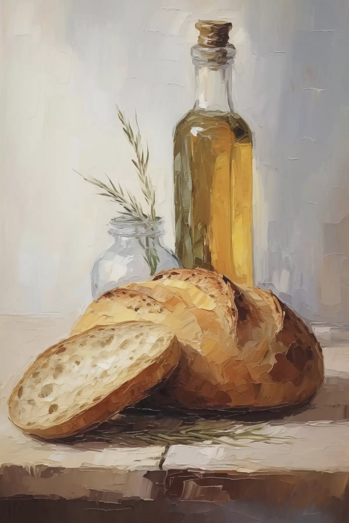 carta da parati Pane e una bottiglia d'olio, dipinto imitazione nr. s46759
