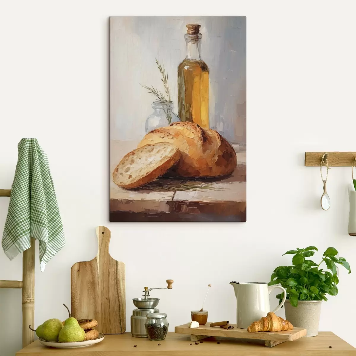 Quadri Pane e una bottiglia d'olio, dipinto imitazione Nr s46759