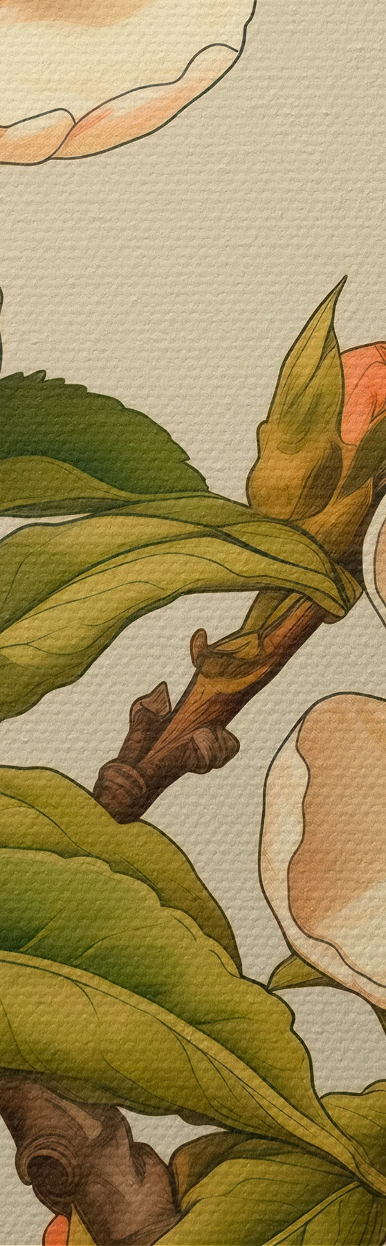 carta da parati Ramo fiorito con fiori bianchi su sfondo beige nello stile dell'illustrazione classica nr. s46923