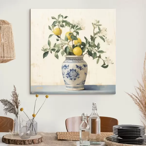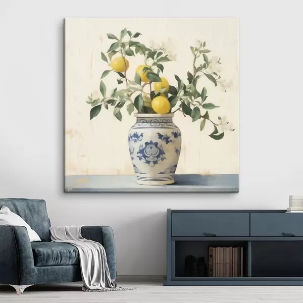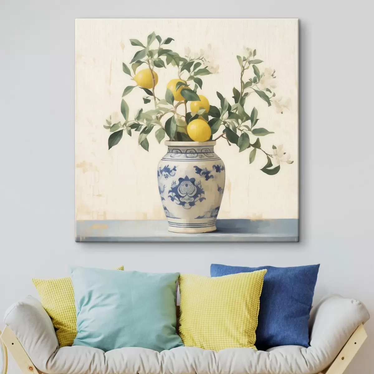 Quadri Limoni in un vaso di ceramica blu e bianco in stile pittura a olio Nr s46924