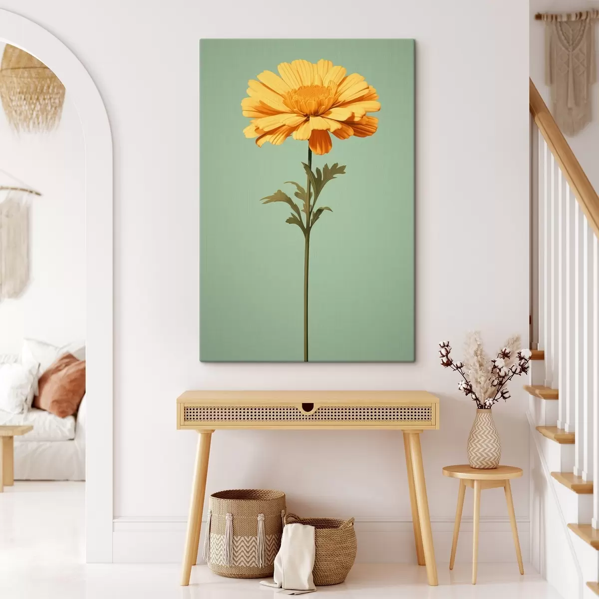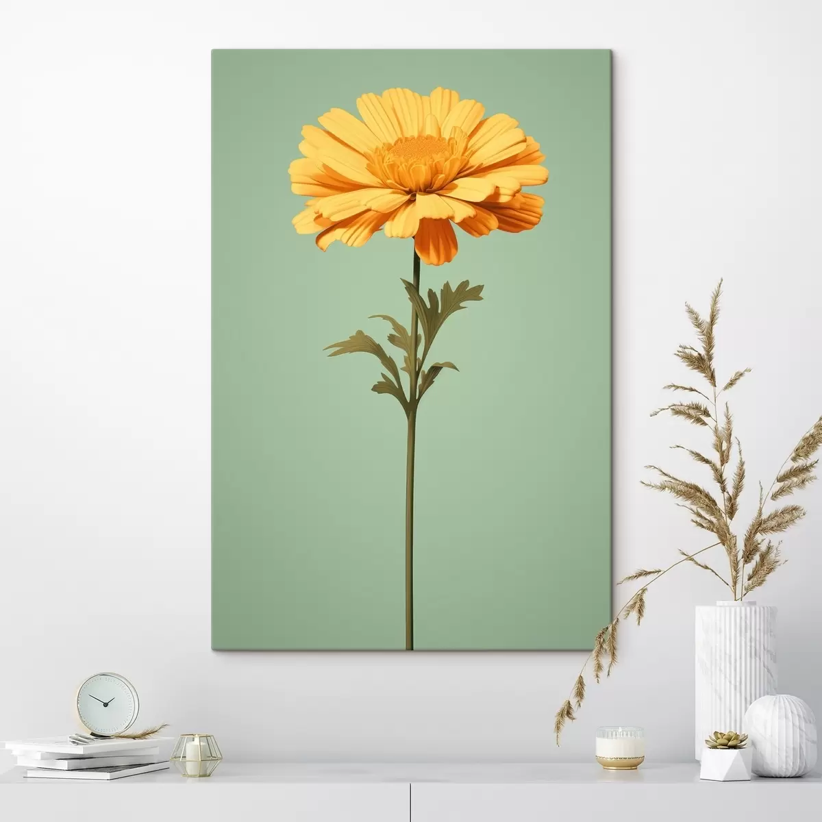 Quadri Calendula gialla su sfondo color menta in stile minimalista Nr s46926