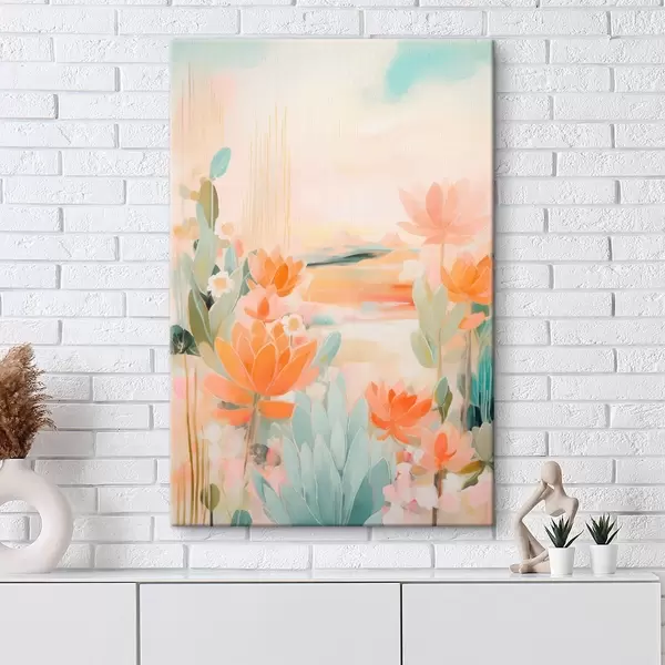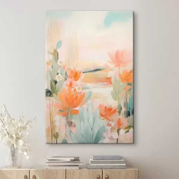 Quadri Paesaggio floreale nei toni del rosa e del blu in uno stile pittorico contemporaneo Nr s46931