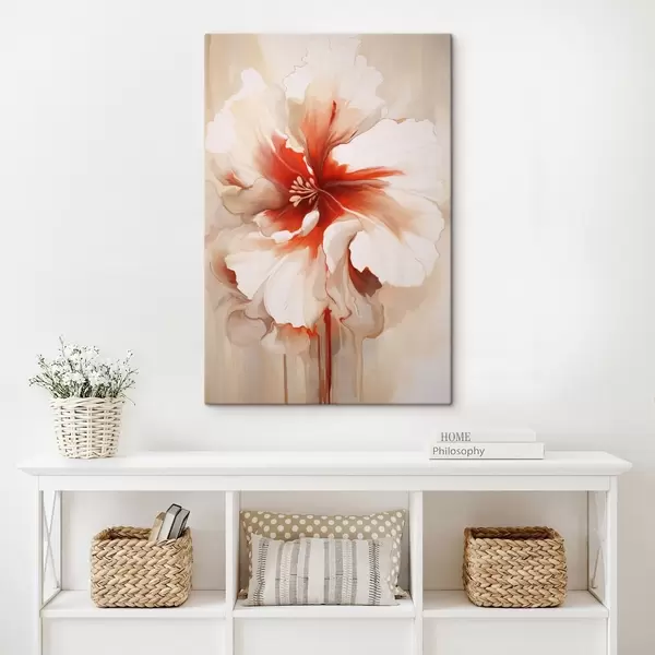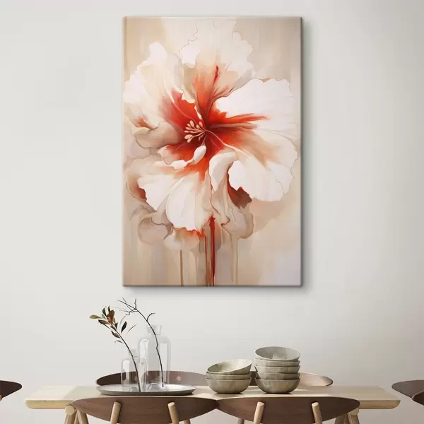 Quadri Primo piano di un fiore bianco e rosso con petali semitrasparenti e gocce di vernice che colano Nr s46941