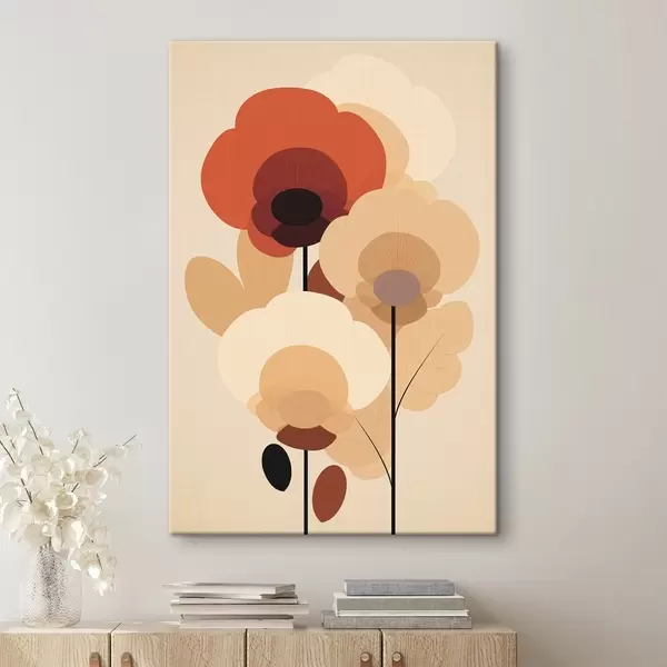 Quadri Fiori astratti in una calda palette di beige in stile minimalista Nr s46942